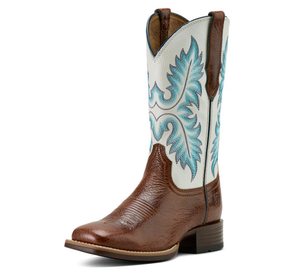 Classic cowgirl style with a modern edge! The Ariat Women's Canyon Point Western Boot blends rugged durability with refined details, featuring a rich brown foot, an ivory shaft, and striking turquoise embroidery. Built for comfort and performance, these boots are perfect for the ranch, rodeo, or a night out!