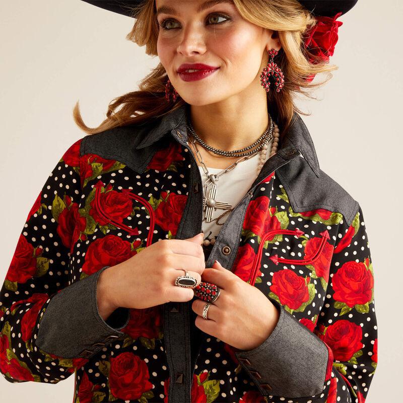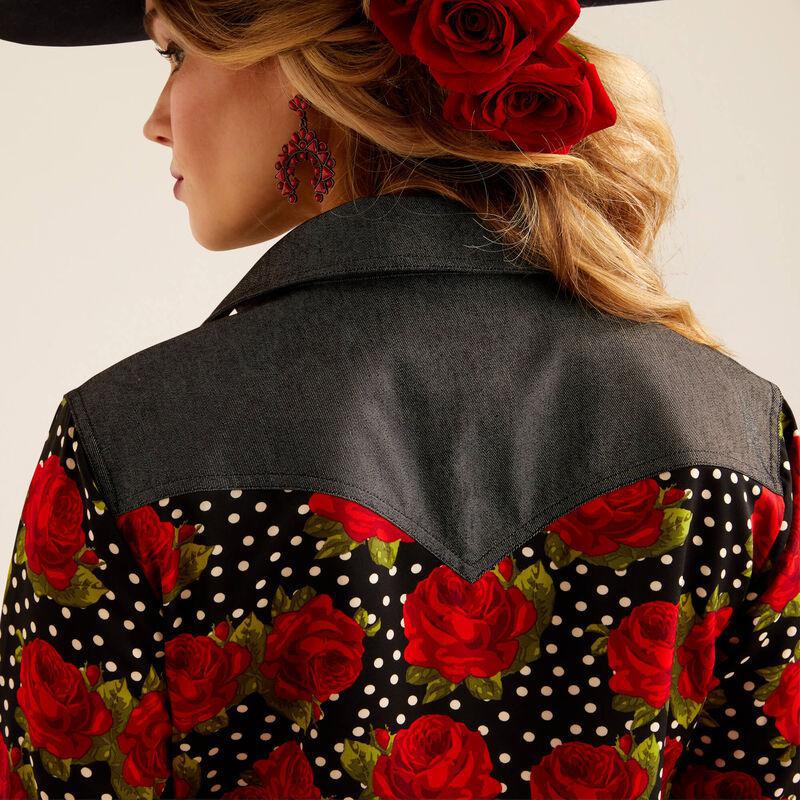 Duster or dress—you decide. Part of our limited-edition collab with Rodeo Quincy, this bold statement piece features the brand's iconic red roses and pops of chambray for contrast. It'll leave a lasting impression however you wear it.