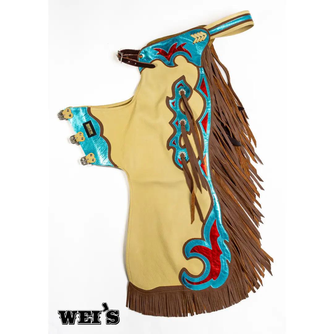 Meticulous attention to detail and workmanship is obvious throughout this chap, from the hand selection of the finest leathers to the masterful carving and filigree of the tooled yoke and side billets. Many more designs and variations than any other chap available on the market. Leg straps are hand riveted with copper rivets.