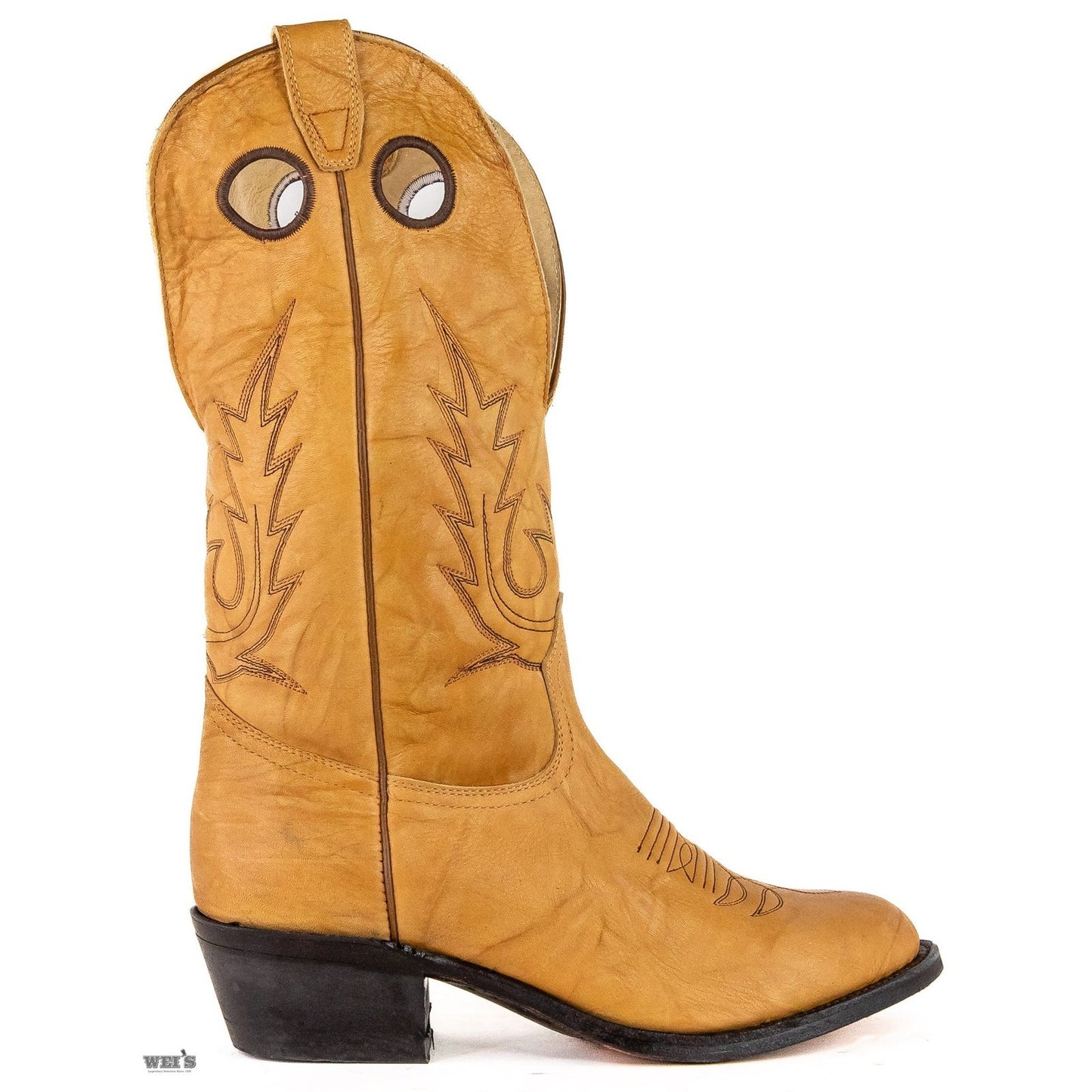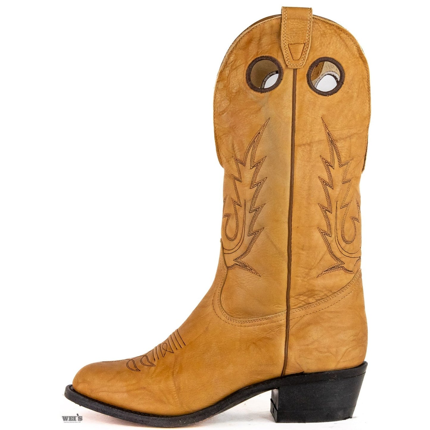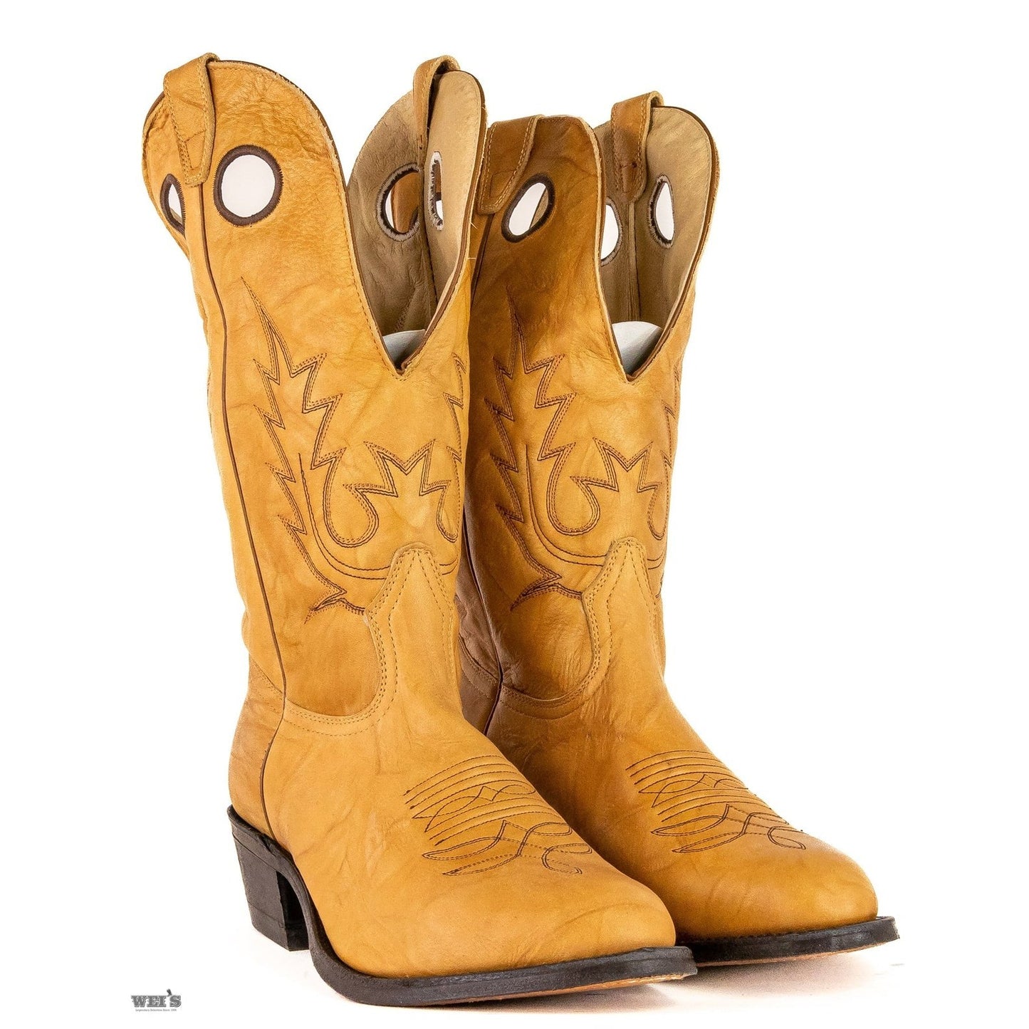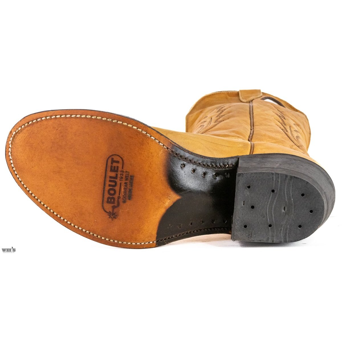 This Boulet boot is custom made for Wei's, and is not available anywhere else. These honey marble Boulets have the cowboy heel that riders want, together with a medium round toe providing more toe box room. Sizes from 1E to 5E.