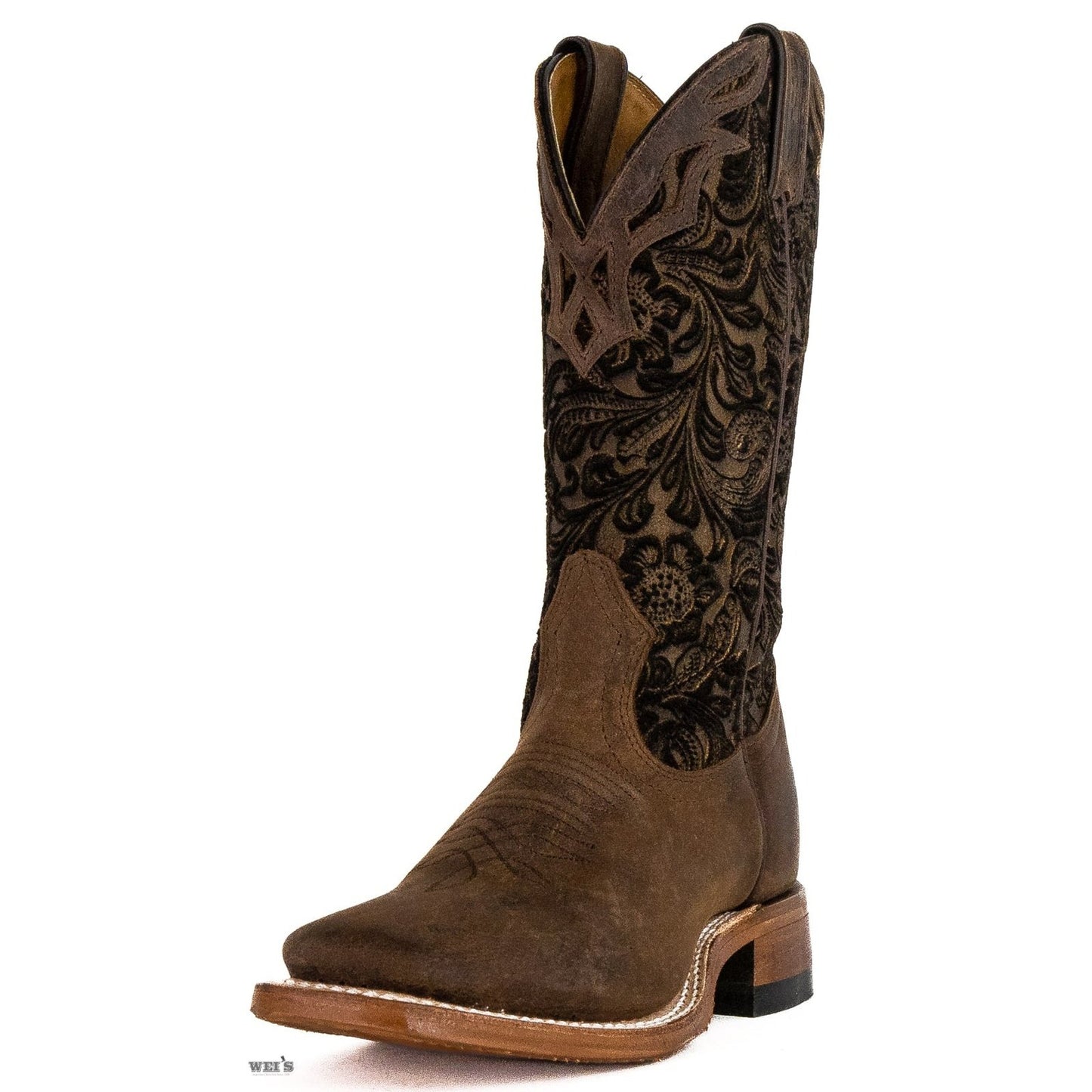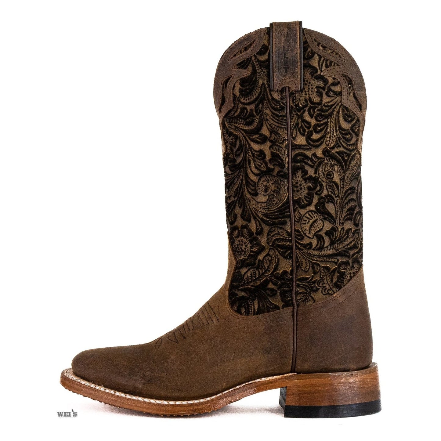 Boulet Women's Cowgirl Boots 11" Oiled Cowhide Embossed Nubuck Roper Heel Wide Square Toe