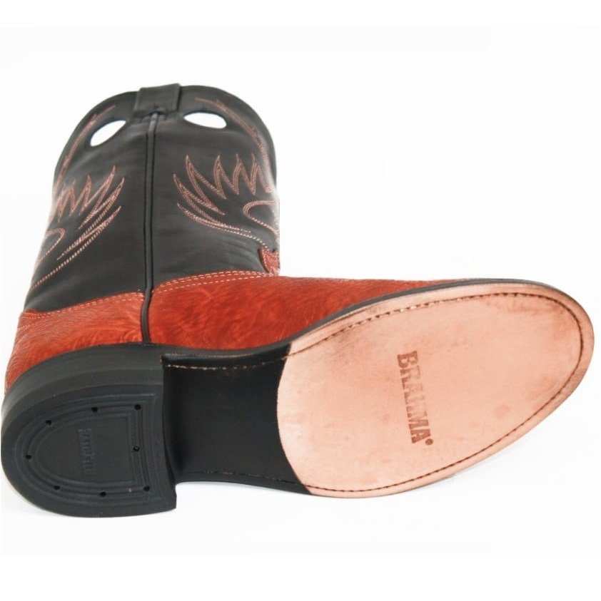This Canada West Brahma boot has a classy, contrasting warm brown boot and black embroidered shaft.