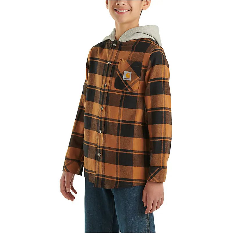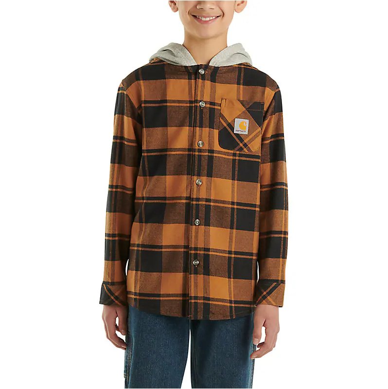 Carhartt Boy's Long-Sleeve Flannel Button-Front Hooded Shirt (Brown)