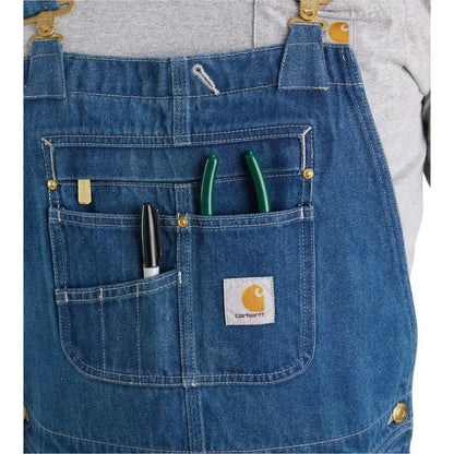 From mucking stalls to fixing fences, these Carhartt men's bib overalls can do it all. Midweight denim is washed to give them a broken-in feel, while triple-stitched seams give them legendary Carhartt durability. The generous cut gives you room to climb, crawl, and bend with ease.