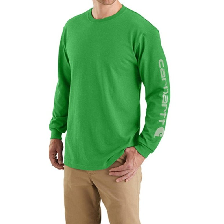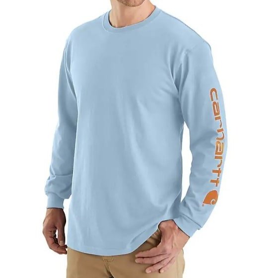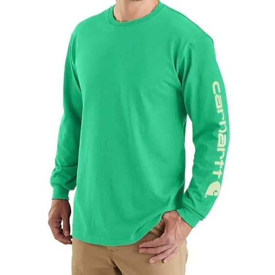 Since 1889, Carhartt has made durable workwear you can count on as you tackle the toughest jobs. This men's long-sleeve t-shirt bears the name proudly on the sleeve. It's made of heavyweight cotton jersey and cut generously for a roomy fit.