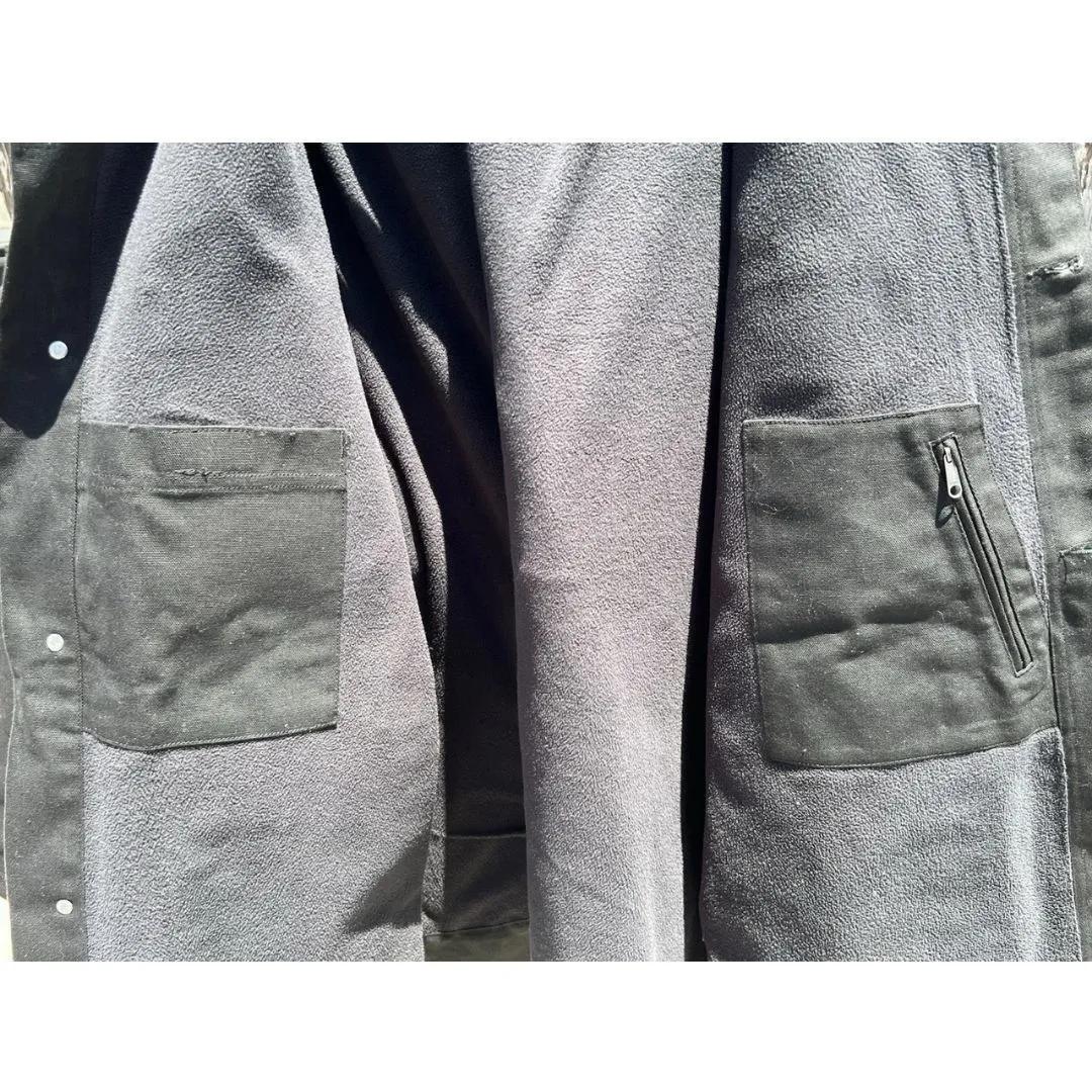 This Carhartt classic is updated and engineered for maximum range of movement. The coat is 12 oz., firm hand with 100 percent ring spun cotton duck material. It's built broken-in to help you move like you mean it 24/7. It features stretch across the shoulders and arms that move free without the jacket riding up, and bigger bend in the elbows. The lining is poly-fleece with a sherpa-trimmed collar and under-collar snaps for optional hood. There is a button-front closure with 2-rivet reinforced chest pockets, one with zippered closure and one with hook-and-loop closure. For added durability, the seams are triple-stiched with a drop tail hem for added coverage. Back length: large regular: 31 in.; large tall: 33 in. imported.