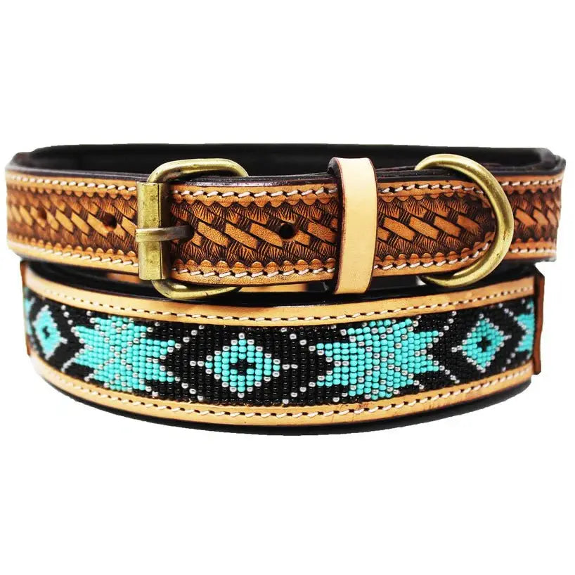 This Challenger soft padded dog collar is made of genuine full-grain soft supple leather to provide a comfortable fit. Uniquely accented with an eye-catching beaded inlay.