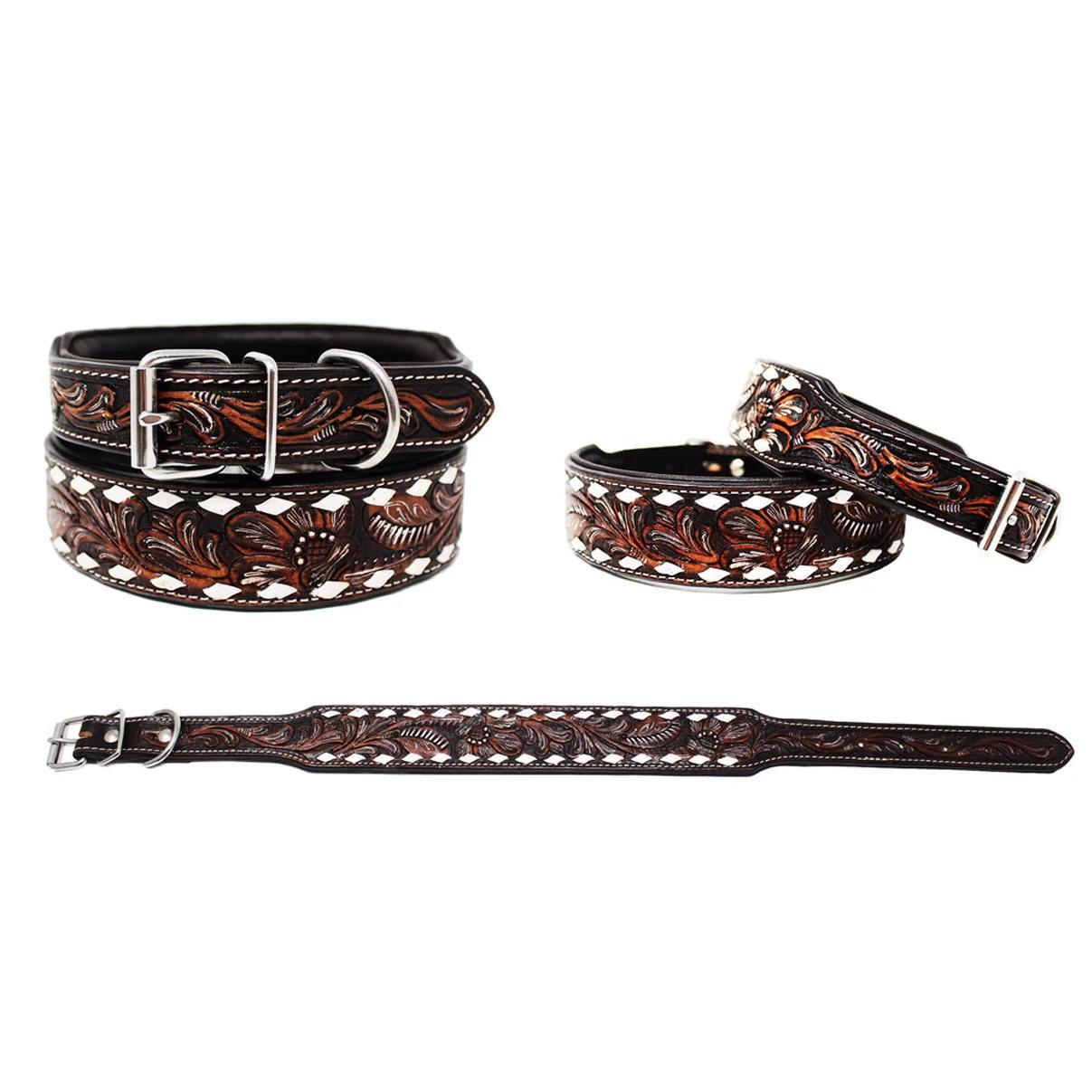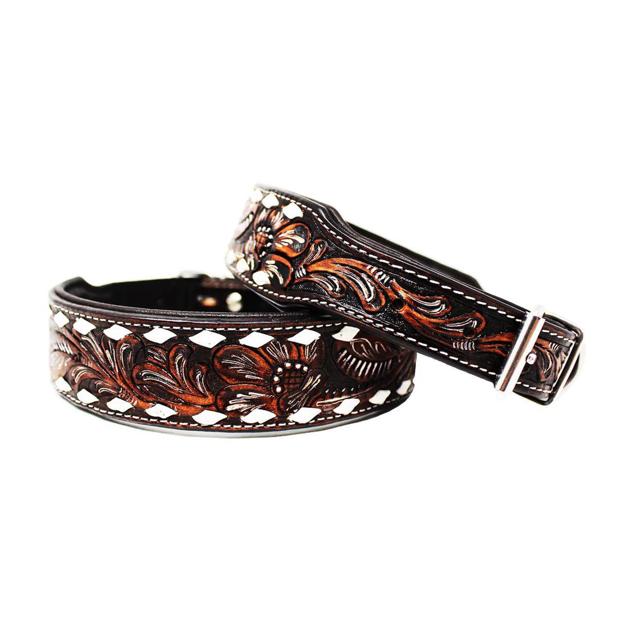 Challenger Dog's Amish 100% Cow Leather Padded Heavy Duty Tooled Collar Brown