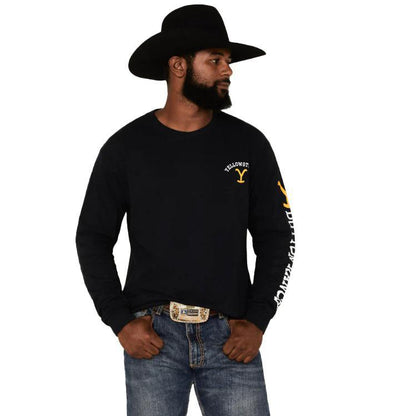 Show off the love of your favorite show with the Yellowstone Y-Dutton Long Sleeve Tee. The black long sleeve features the Y on the left chest and the Y with Dutton Ranch down the left sleeve. The design will show everyone that you belong on the ranch.