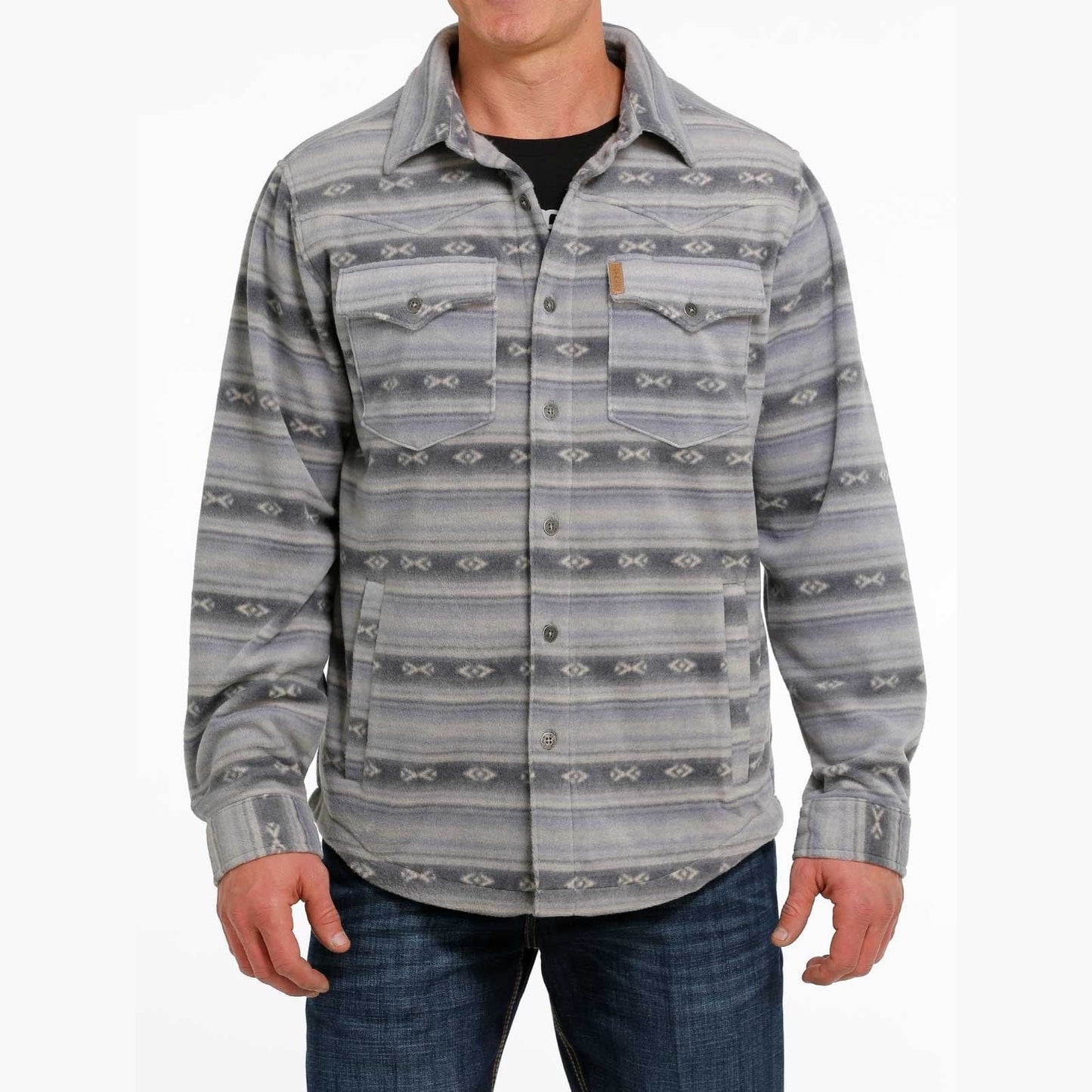 Cinch Men’s Shirt Jacket Polar Fleece Aztec Printed BLU