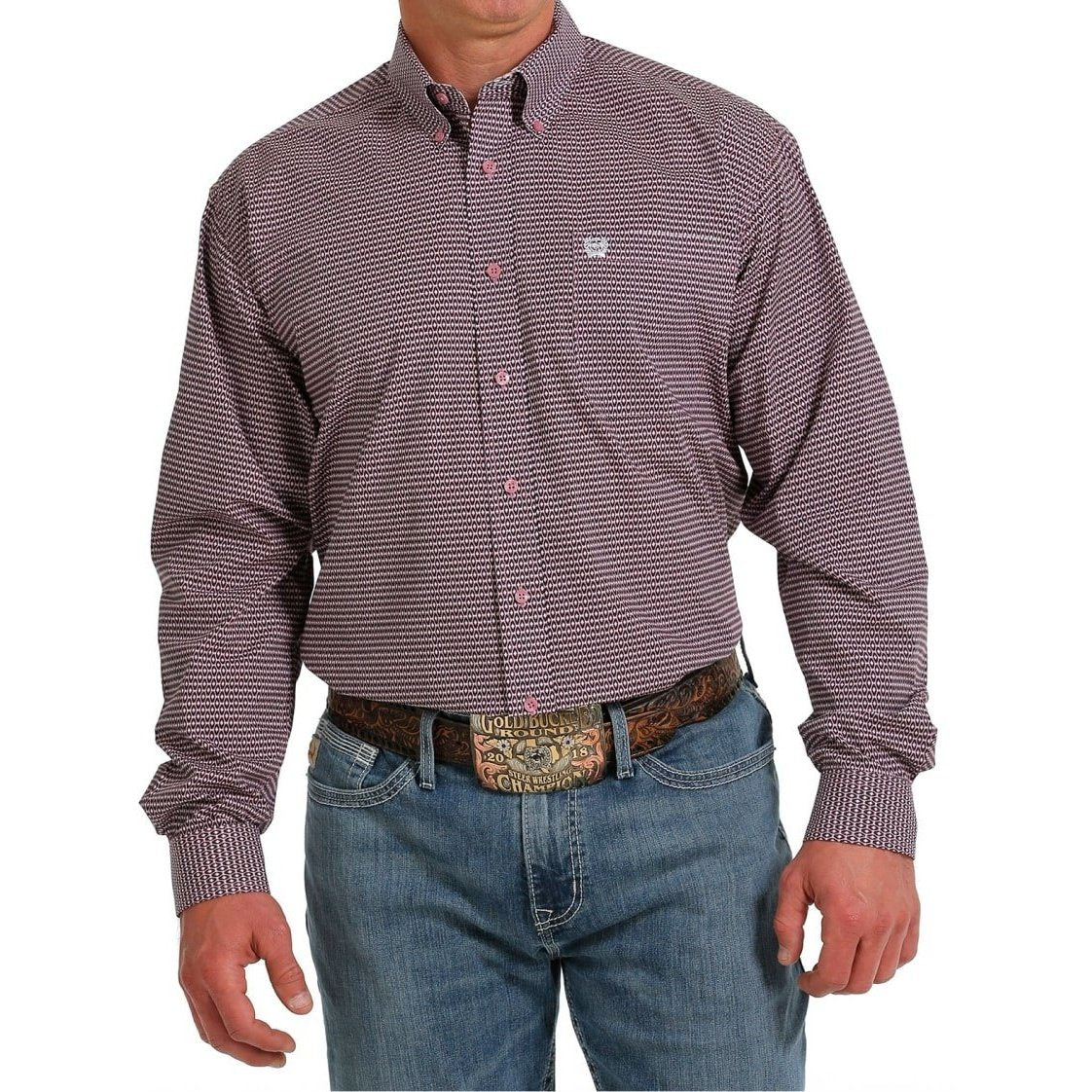 Cinch Men’s Shirt Casual Long Sleeve Button Down Pink/Black Pattern
