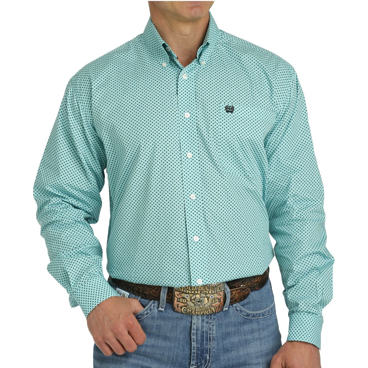 Cinch Men's Blue Geometric Plain Weave Shirt