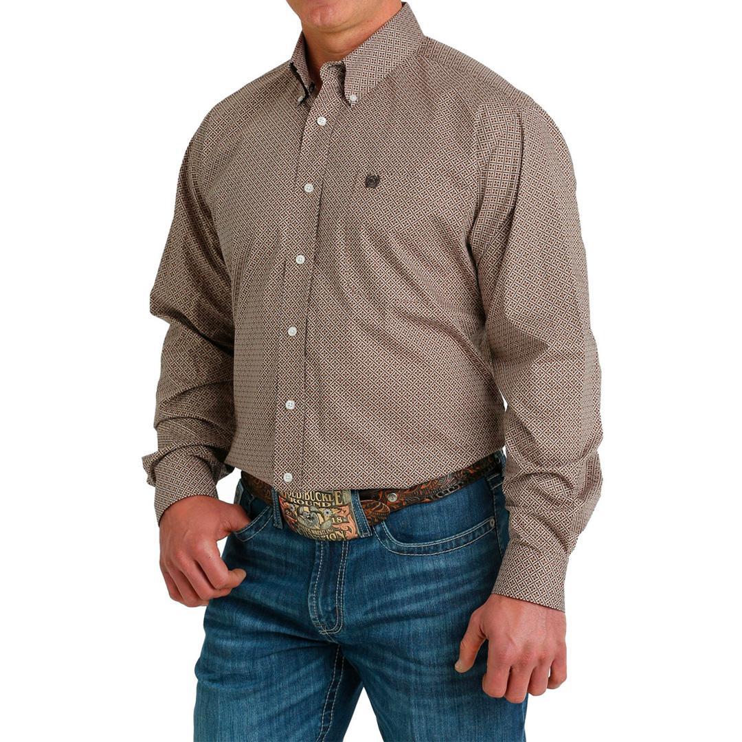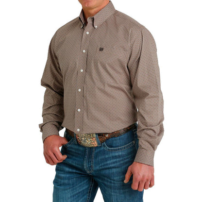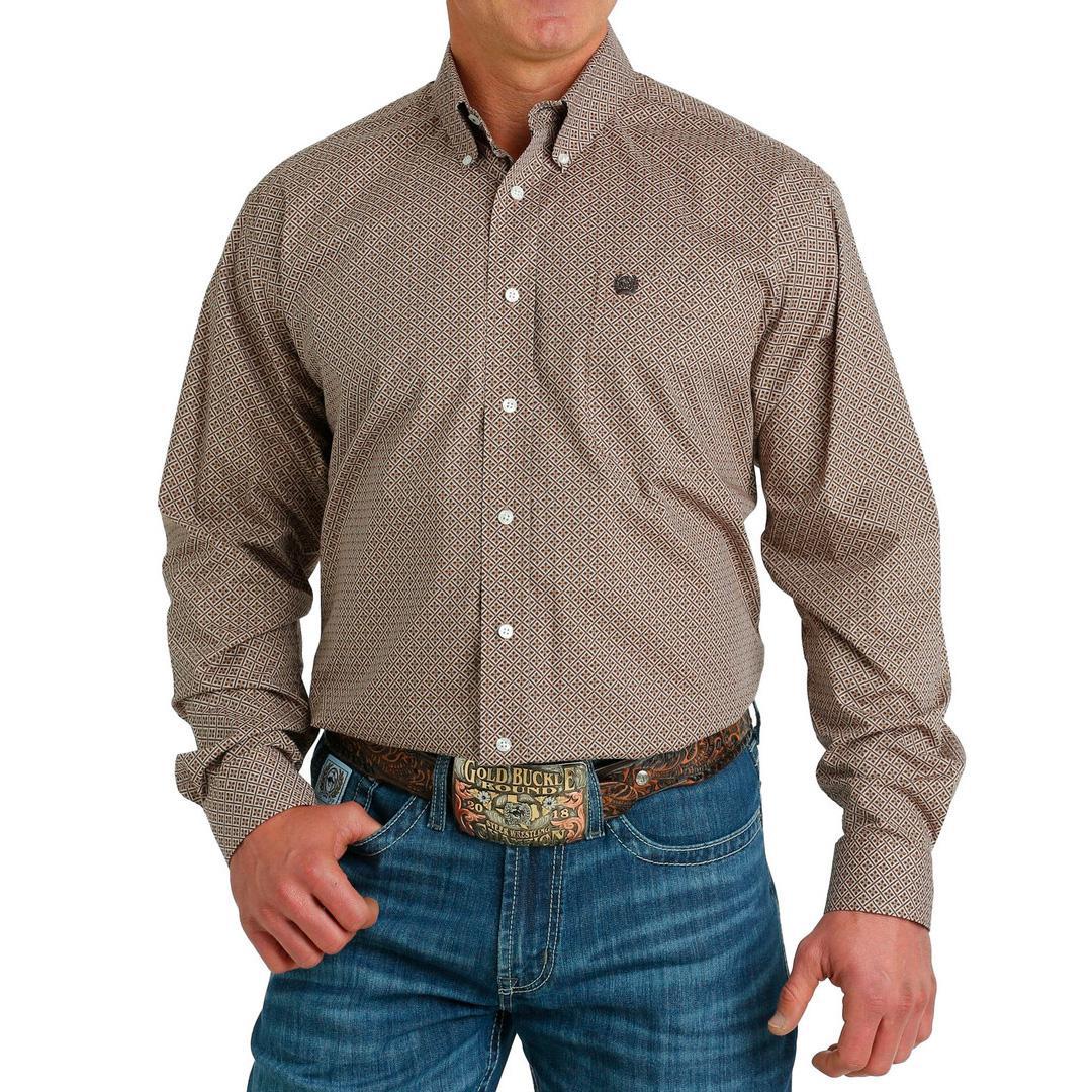 Cinch Men's Long Sleeve Geometric Print Khaki