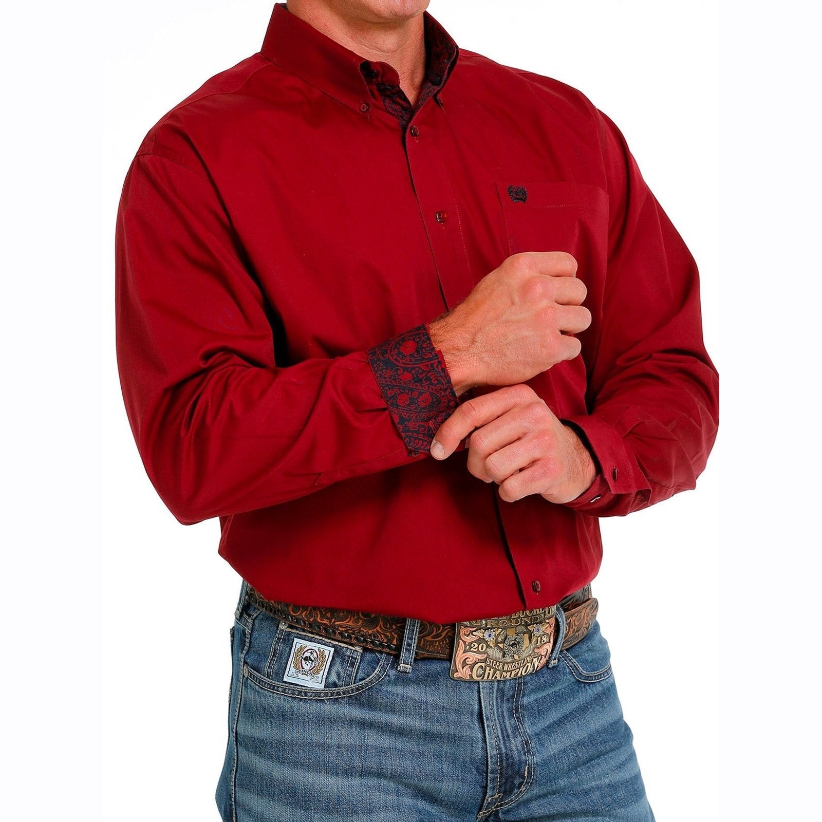 This tried-and-true classic red button down by CINCH features paisley contrast trim, an open left front pocket with logo embroidery and trendy red square buttons. Pair this handsome shirt with new blue jeans or khakis and go bold at the office or after hours.
