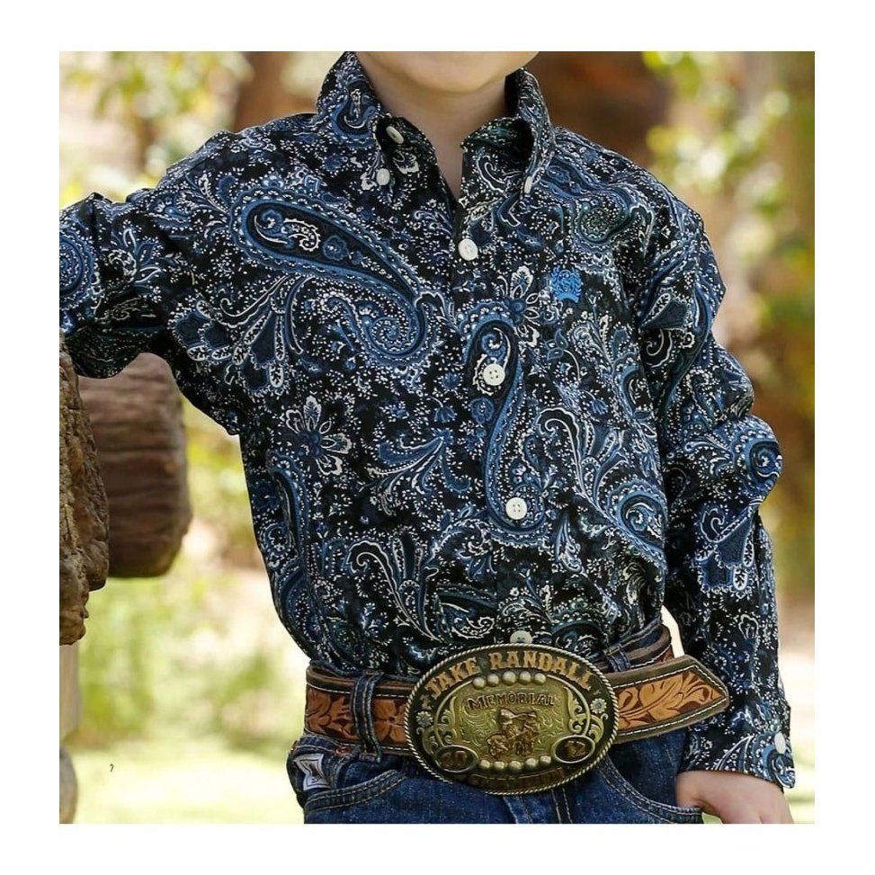 Cinch Kid's Shirt Long Sleeve Button Down Paisley