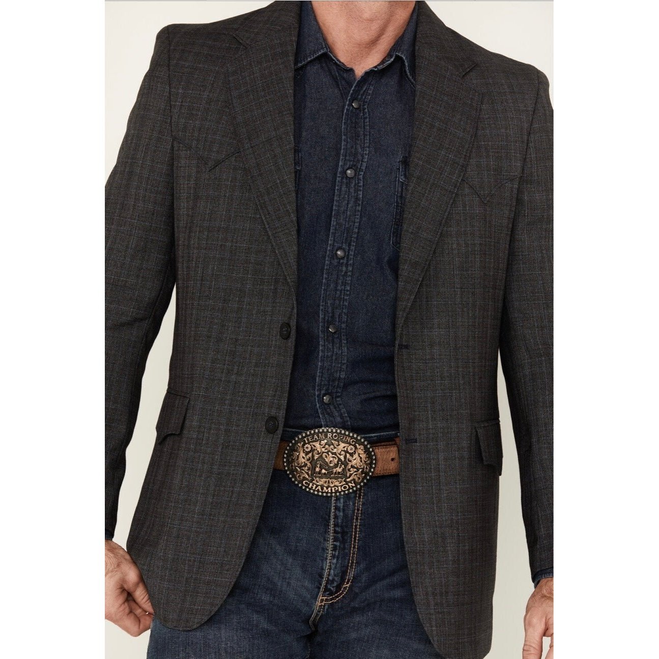 The Circle S Men’s Plaid Print Houston Window Pane Sport Coat is a sophisticated and stylish addition to any Western-inspired wardrobe. This long-sleeve sport coat features a classic two-button front closure and refined three-button closure cuffs. It is designed with a traditional lapel collar for a polished look.