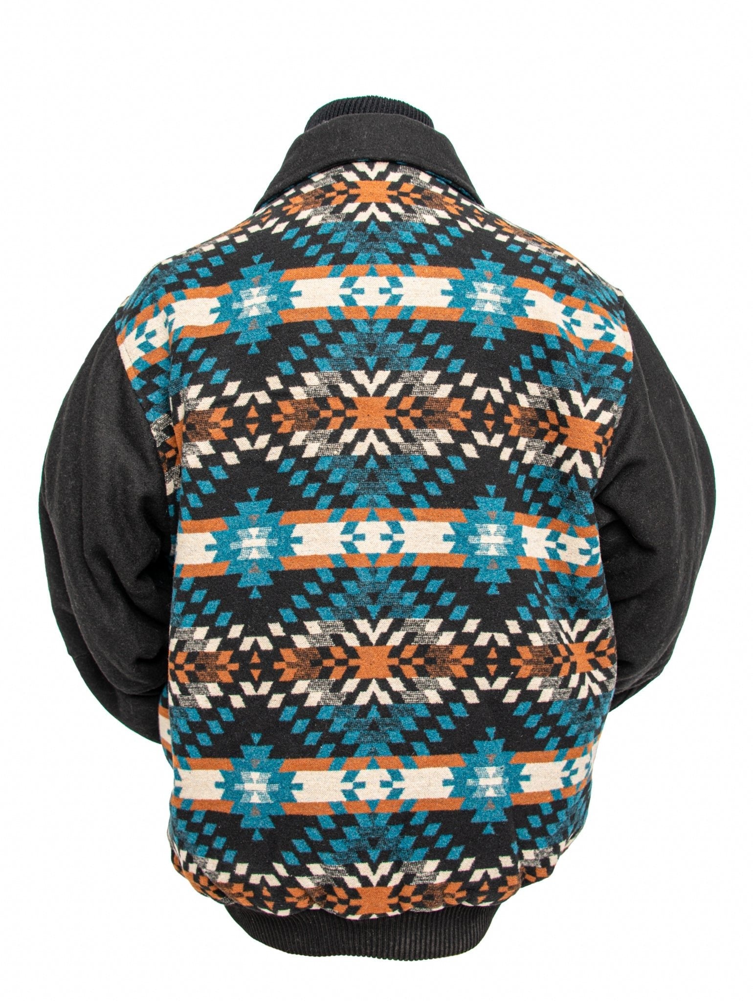 - Colour: Southwestern print torso with solid black sleeves and collar