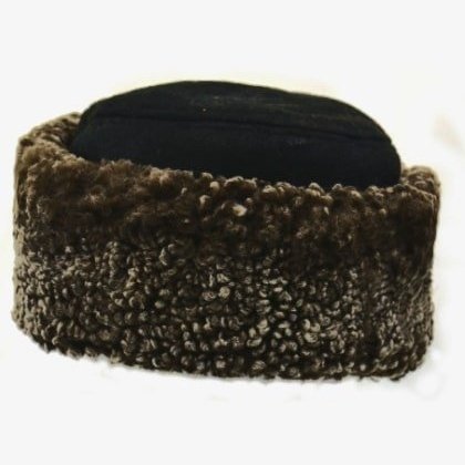 This traditional hat for winter is made from sheep skin and fur in Manitoba, Canada. A flat top cuffed style, it folds up or down.