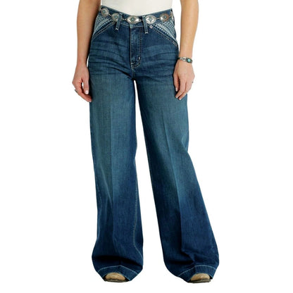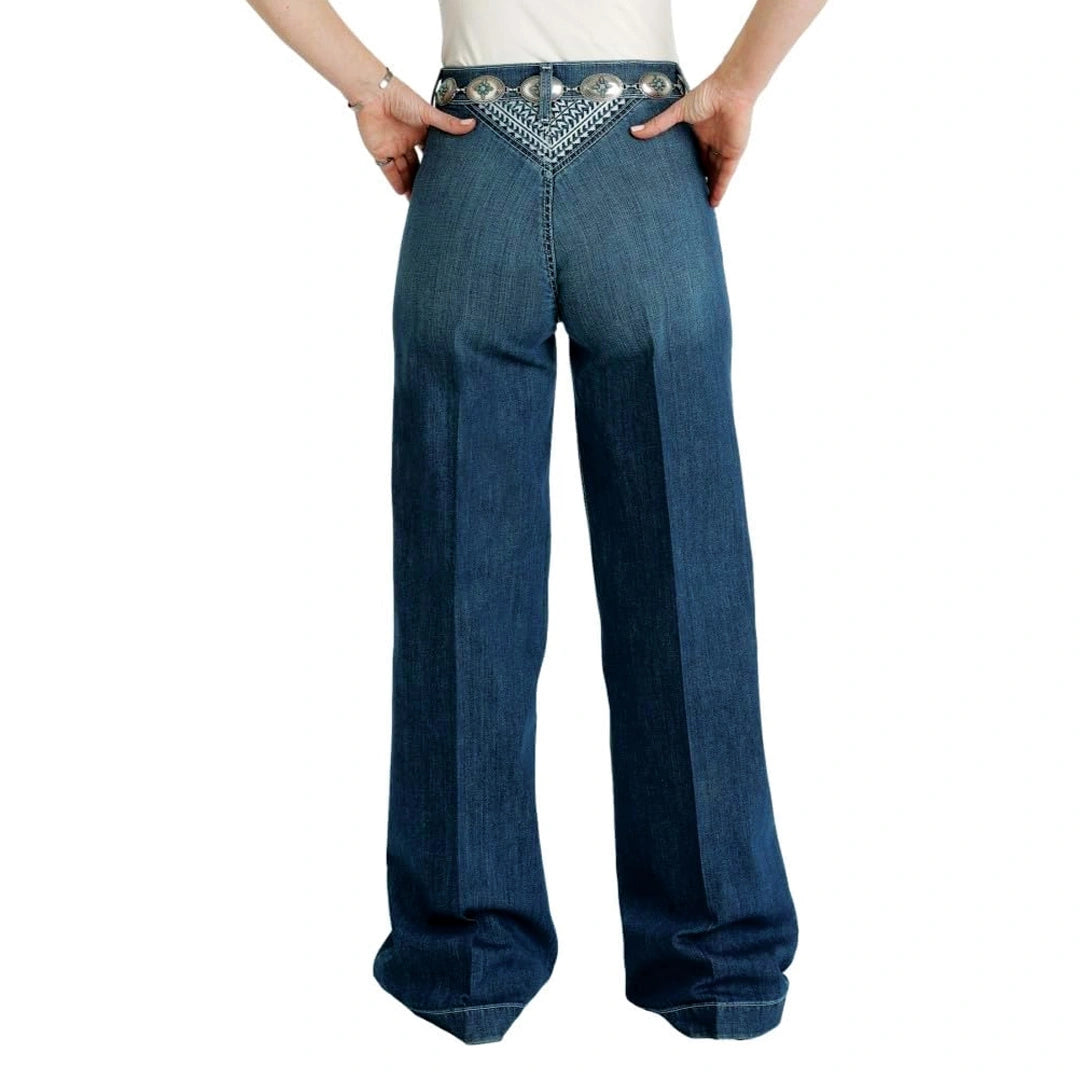 Looking for something special this holiday season? Look no further than the all-new SKYLAR wide leg. Subtle finishing atop a medium stonewash is transformed with detailed antique cream southwest embroidery that highlights the front pockets and back yoke, making a jean that is both stylish and impressive