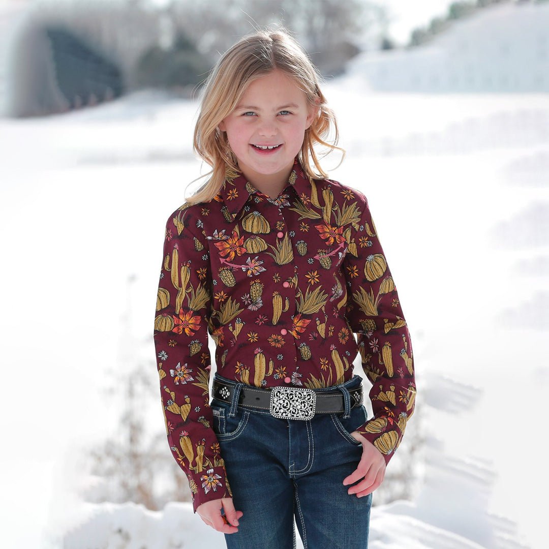Cruel Girl's Cactus Print Western Shirt In Purple PUR