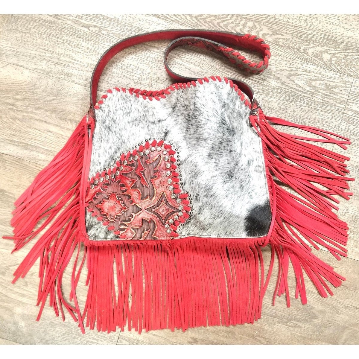 Handmade Purse in Cowhide and Leather with Metal Accents