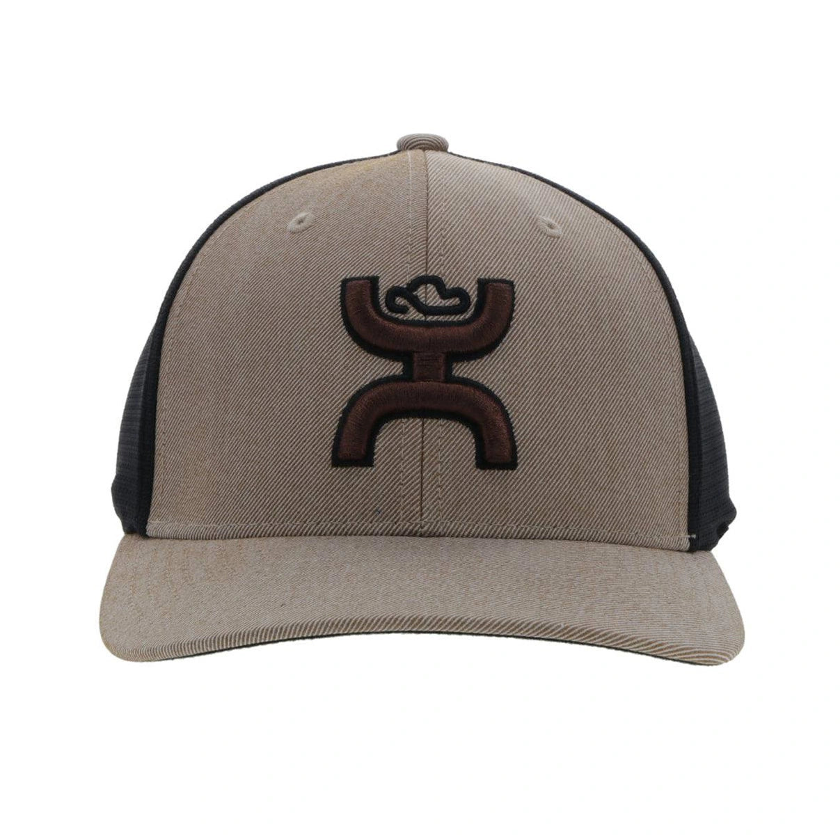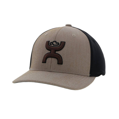 The Hooey "Ash" Tan/Black Flexfit Ball Cap is a comfortable and stylish headwear option, perfect for everyday wear. It features a distinctive Brown/Black Hooey Logo prominently displayed on the front.