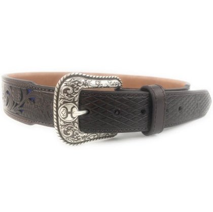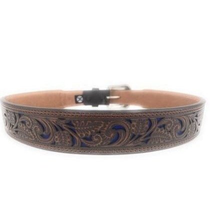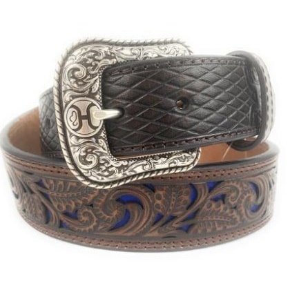 Hooey Men's Belt Tooled Brown Leather With Blue Inlay 1914BE8