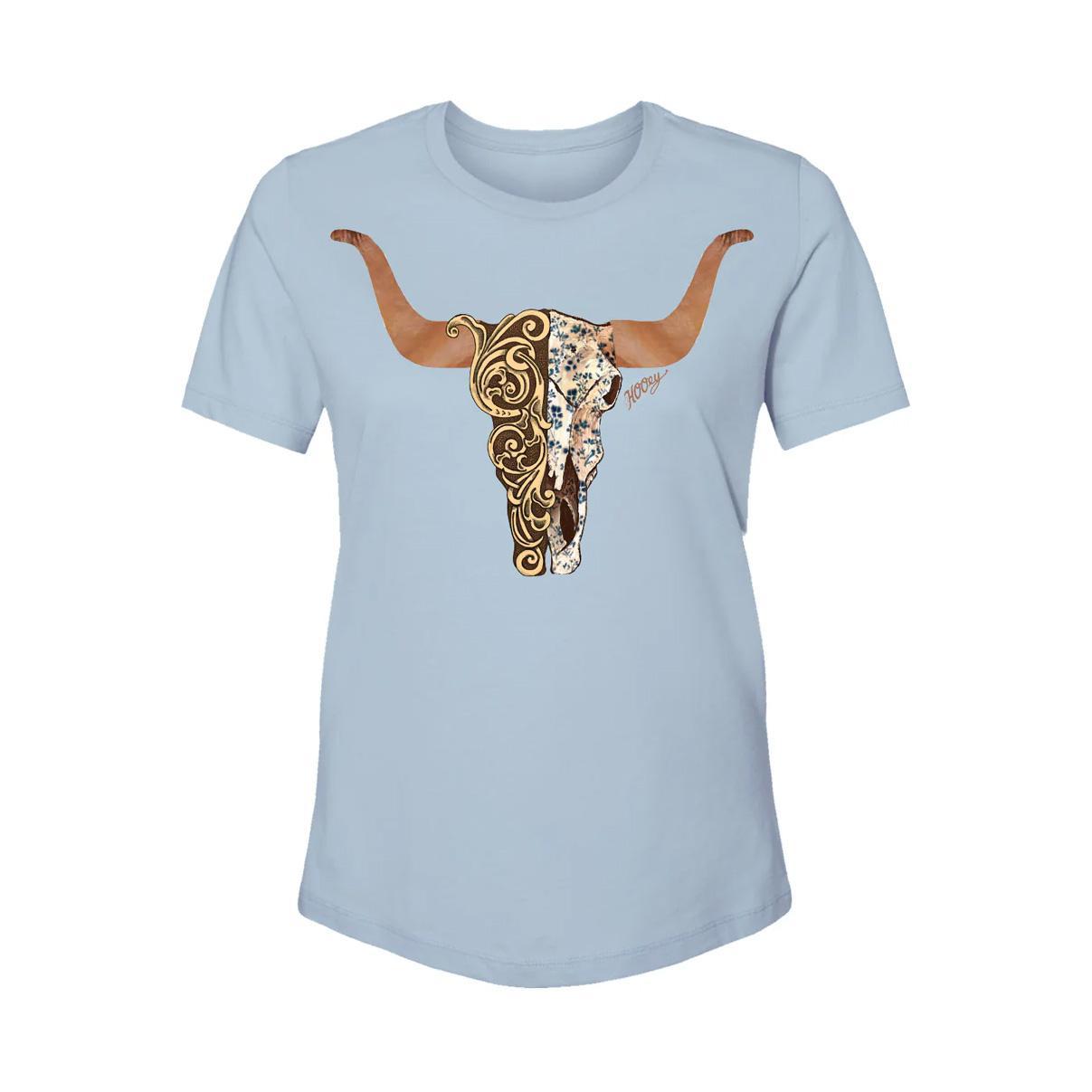 Hooey Women’s T-Shirt “Yuma” Denim with Brown/Tan Floral Skull