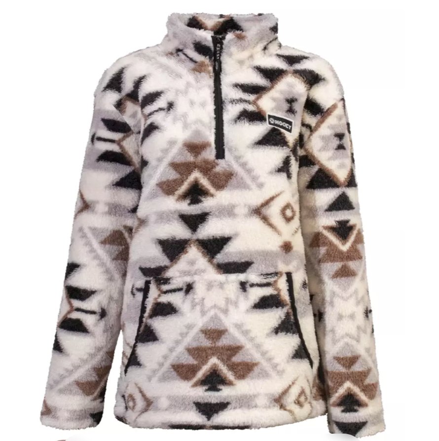 Ultra Soft and lightweight built for style and performance. This pullover will be a hot seller for sure! Big, bold Aztec pattern in white, black, tan, and shades of grey. Snuggle up to this one! Hooey logo patch sewn at left chest. Hooey fleeces are super soft, and provide ultimate comfort during cold weather. Reinforced kangaroo pocket with 1/4 easy-zip construction on the zipper. Go with Hooey for your casual winter wear.