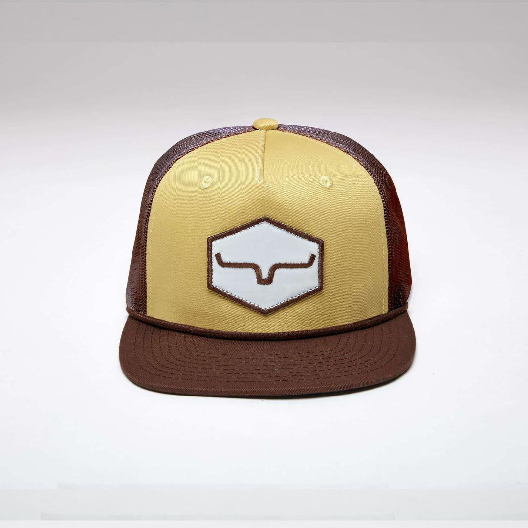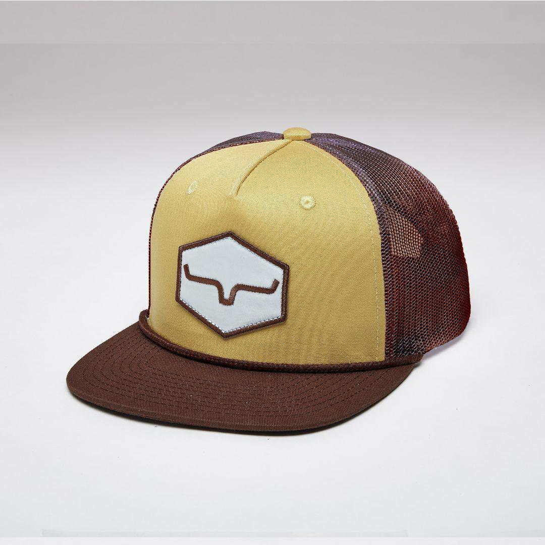 This trucker cap "DG Mesher Reissue" by Kimes Ranch brings western grit with it's off-white design and breathable mesh paneling. The bold black logo adds a touch of trail style, while the adjustable fit keeps it steady on the range.