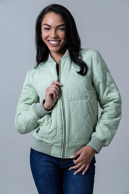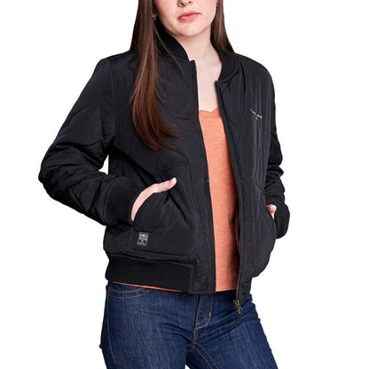 - Details: Long Sleeve, Quilted Fabric, Full Front Zip, 2 Large Hand Pockets, Ribbed Stretch Hem and Cuffs, Contrast Color Lining, Embroidered Horns Logo and Kimes Ranch Patch at Pocket