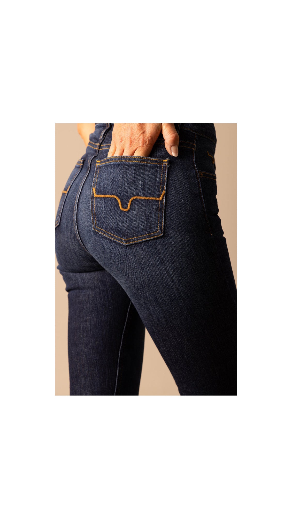 Kimes Ranch brings you the 70's feel-good high-rise jean, the Jennifer cut! Made from premium quality ring-spun cotton. Ring-spun cotton is made during a longer manufacturing process that produces greater tensile/tear strength, durability. and beauty. These jeans last 2-3 times longer.