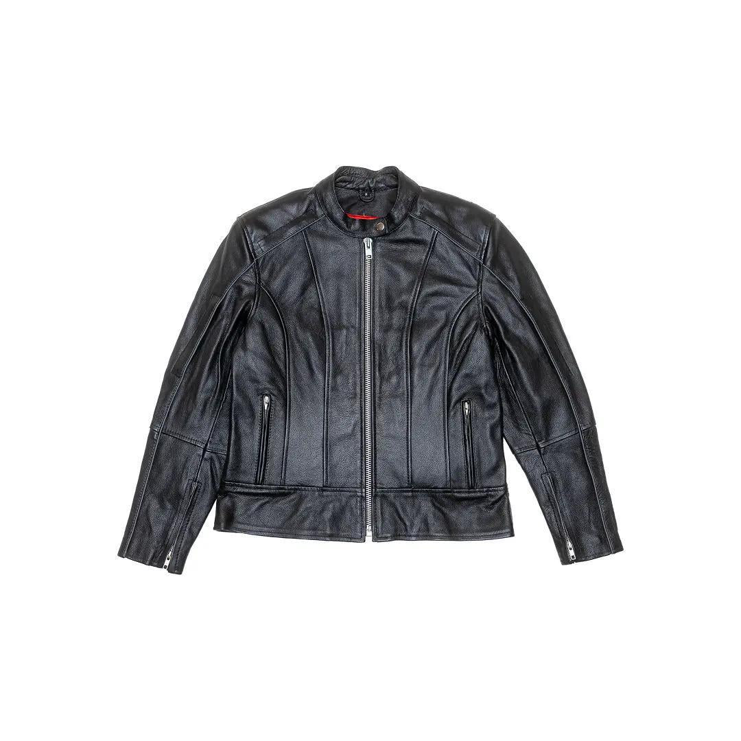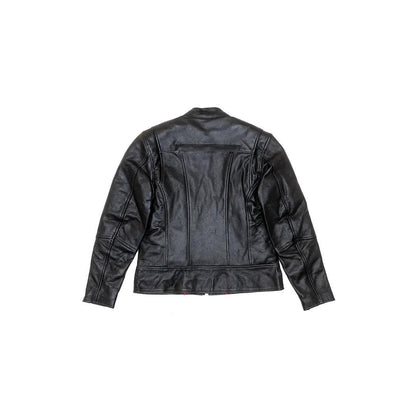 Sleek, strong, and ready to ride — the SH-1901 from Leather King is built for urban edge with classic biker styling. Features include zippered cuffs, full front zip closure, and tailored seam design for a flattering, streamlined fit. A modern staple for any rider's wardrobe.