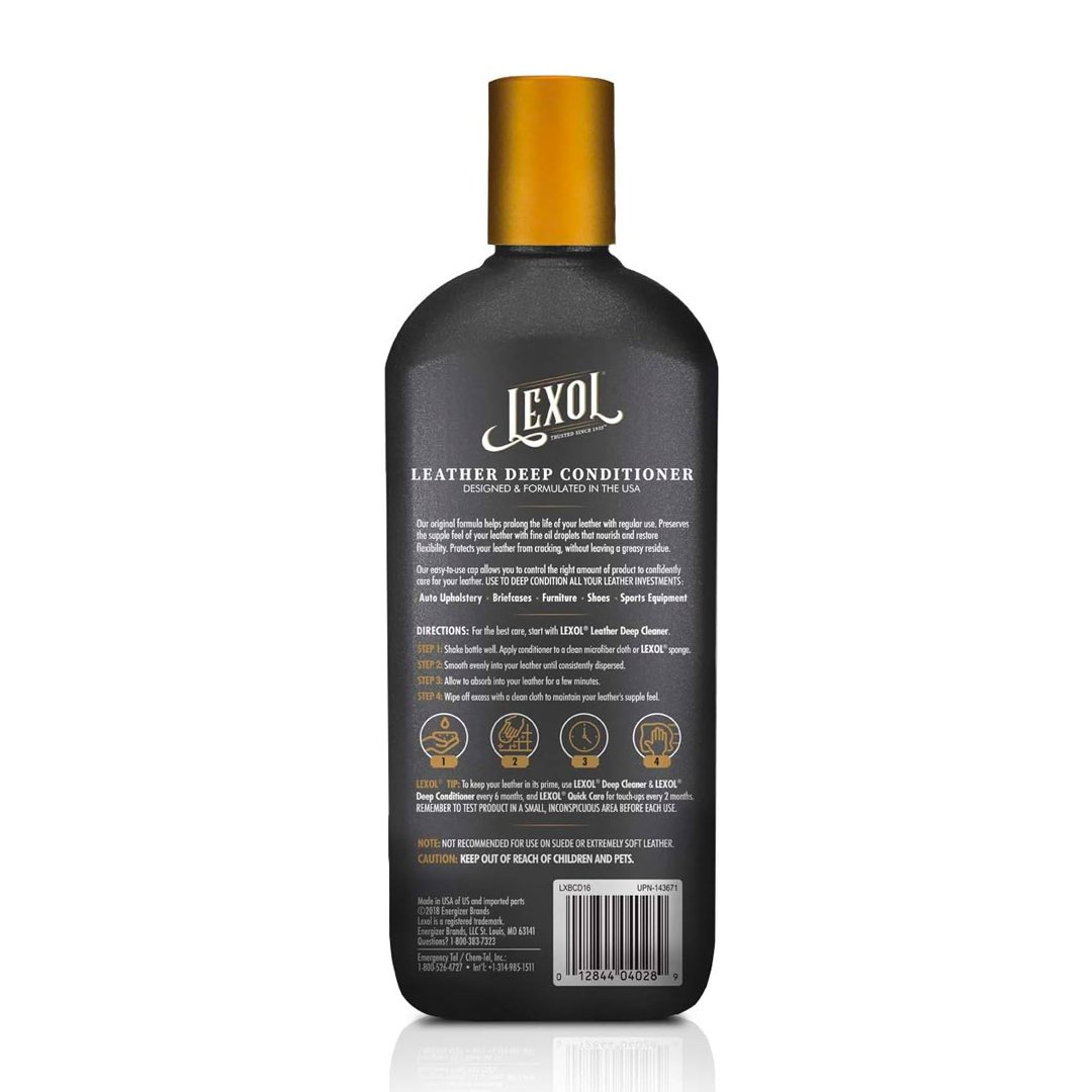- Protect your leather from cracking without leaving greasy residue by using this 16. 9 oz. bottle of Lexol All Leather Deep Conditioner