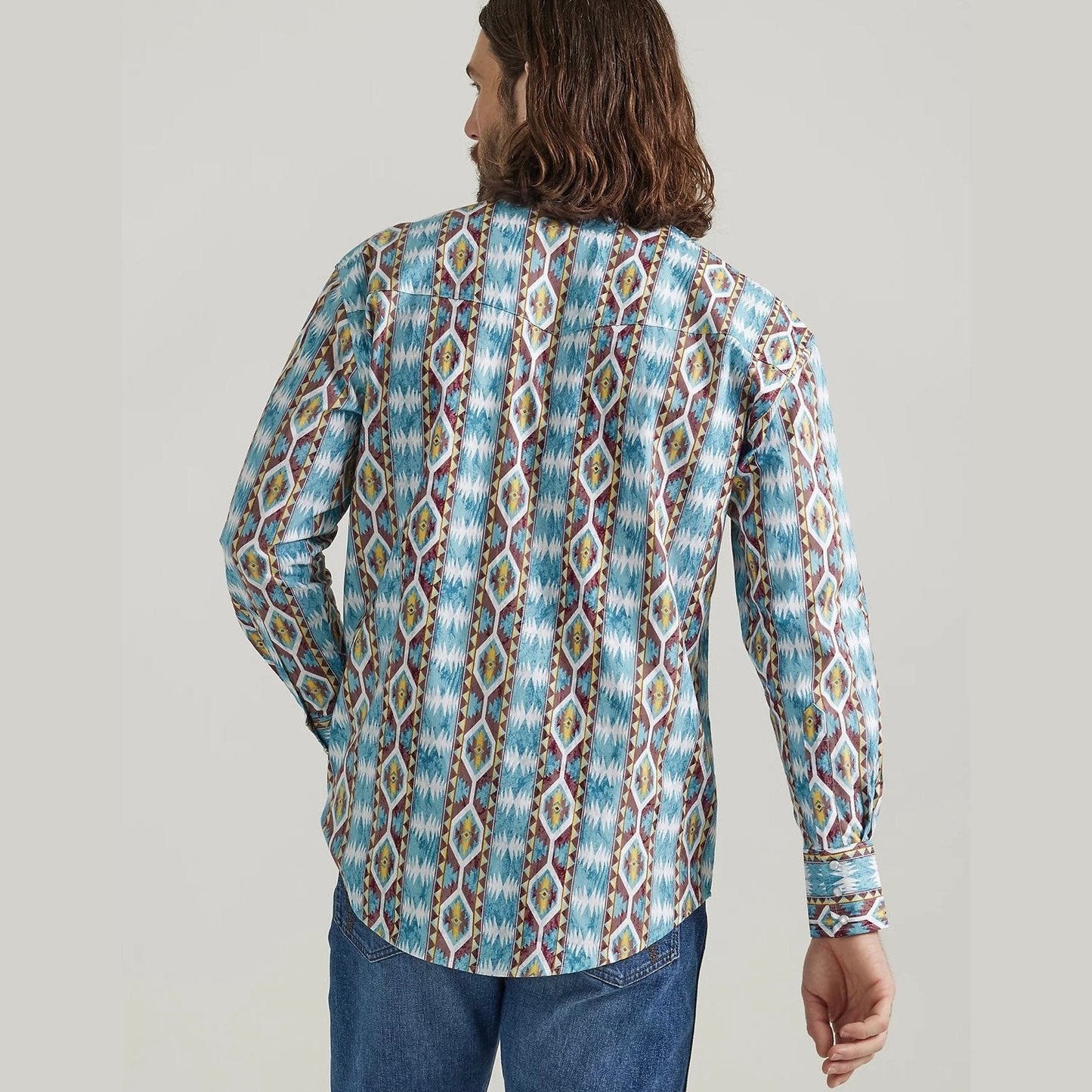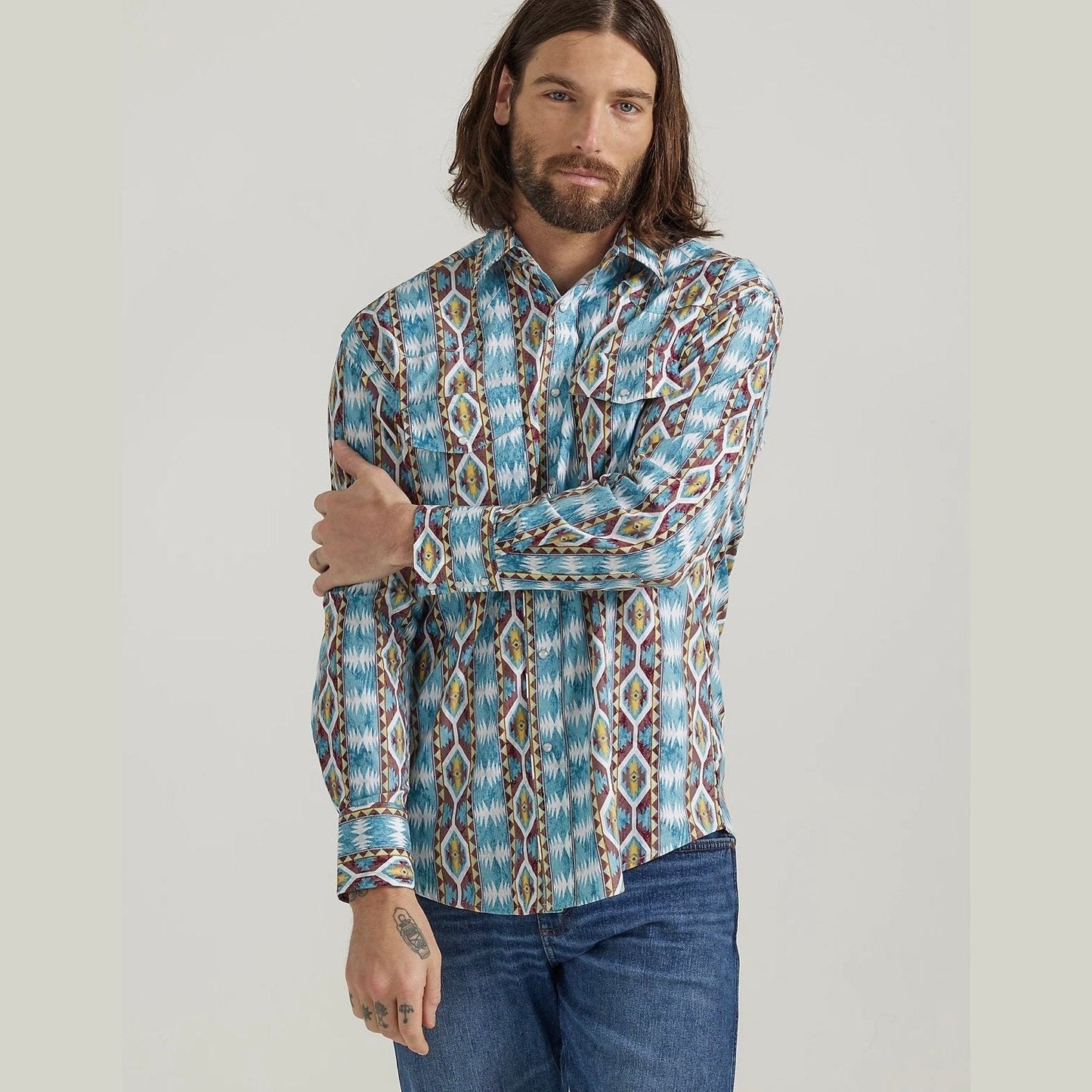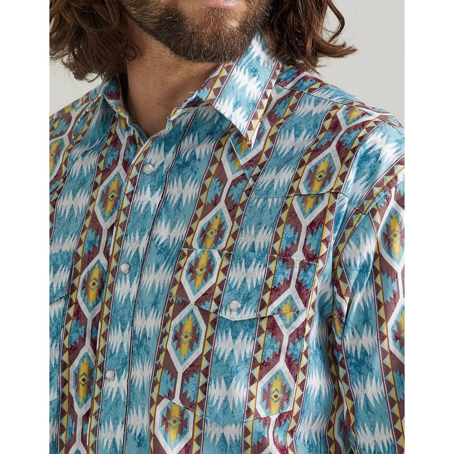 Men’s Wrangler Checotah Long Sleeve Snap Dusty Blue Diamond