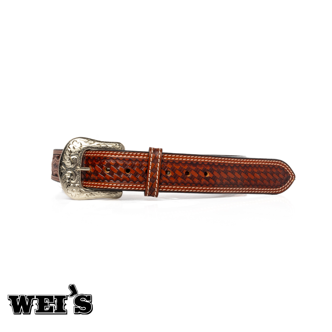 Elevate your style with our Men's Ranger Belt featuring a Basket Weave Billet design complemented by a striking Buckstitch Center and intricate Floral motif. Crafted with precision and attention to detail, this belt embodies rugged elegance. Perfect for adding a touch of personality to any outfit, whether you're at work or out on the town.