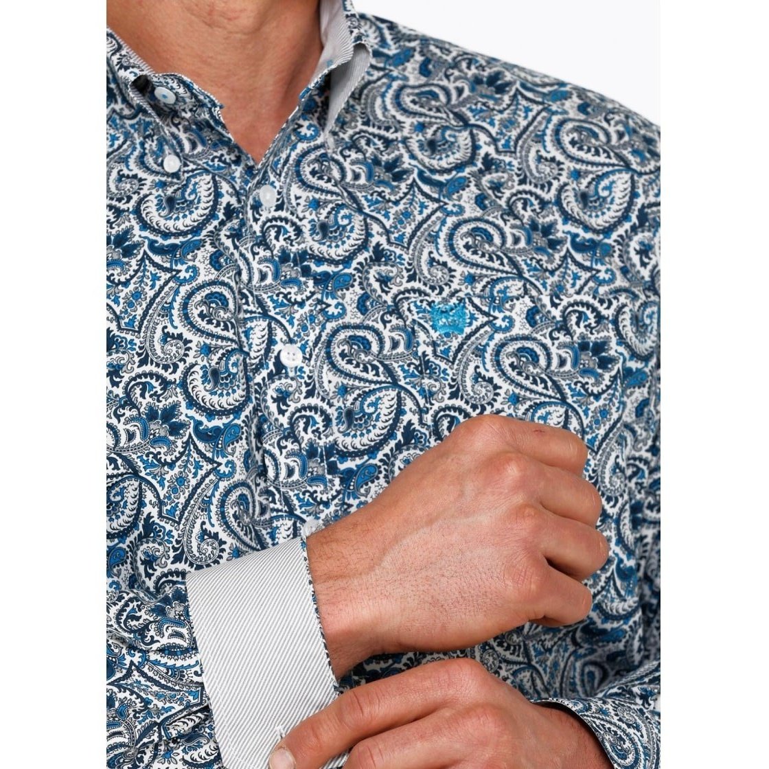 This Cinch men’s paisley long sleeve shirt has a casual style that can also work with a Western look.