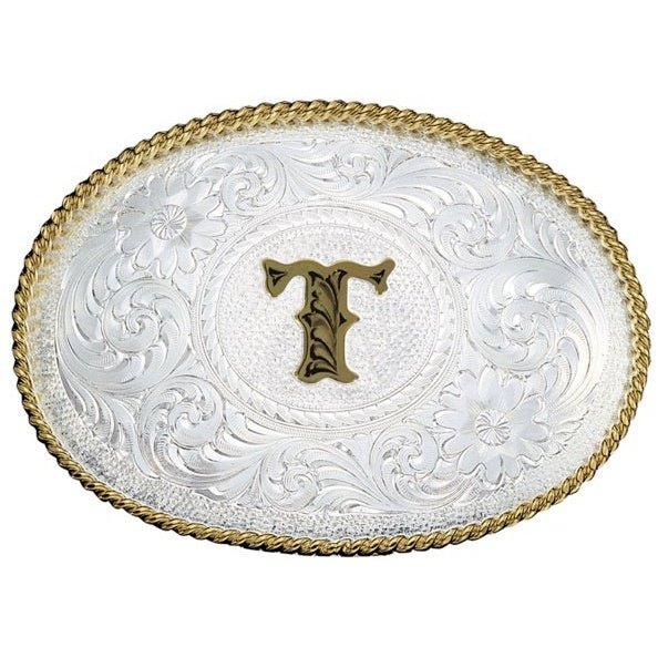 Montana Silversmiths Silver Engraved Initial T Buckle
