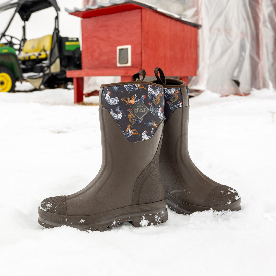 Muck Boot Women’s Chore Mid Chicken Pattern In Dark Brown