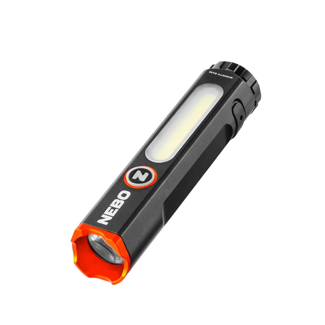 The Mini Larry is the pocket light you reach for when you need versatility. Designed with a 500 lumen LED flashlight, a 450 lumen C•O•B work light and 4 light modes, it easily adapts to any situation from spotlighting to area task lighting. Engineered for industry-leading brightness, C•O•B LED chip technology provides brilliant illumination while offering improved energy efficiency over standard LEDs. The powerful magnetic base allows you to mount the light to any metal surface for convenient, hands-free lighting. The aircraft-grade aluminum construction is impact-resistant, so it is designed to last with a bezel to protect the recessed LED and a rubber work light cover to prevent cracking, if dropped. The sturdy, steel clip allows you to easily carry this light on a belt or a pocket. Alternatively, the clip can be reversed for use as a cap light or removed for a slimmer profile. NEBO’s proprietary Smart Power Control™ creates a seamless transition through light modes to extend battery life and it is fully rechargeable via the integrated USB-C port.