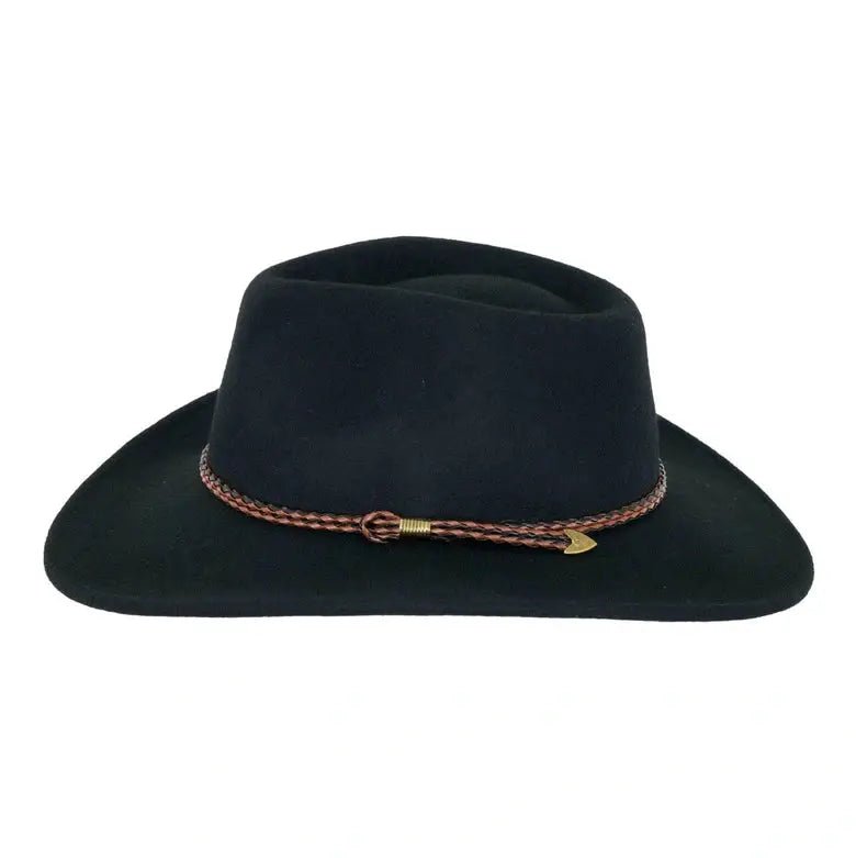 The Broken Hill is made from 100% Australian wool with a UPF rating of 50 and completed with a band of woven black and brown leather with chin cord.