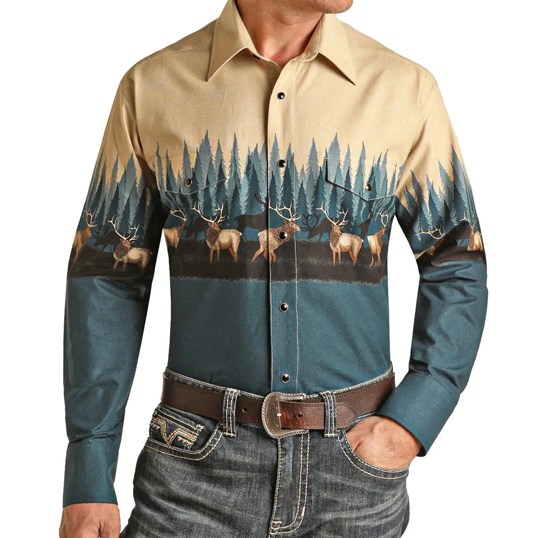 Introducing the Panhandle Men's Elk Border Long Sleeve Snap shirt – a rugged and stylish choice for the modern adventurer. This shirt features a distinctive elk border design, adding a touch of outdoor flair to your wardrobe. Crafted with quality materials and attention to detail, it offers both comfort and durability. Elevate your casual look with the Panhandle Men's Elk Border Long Sleeve Snap shirt, where outdoor aesthetics meet contemporary style for the adventurous man.