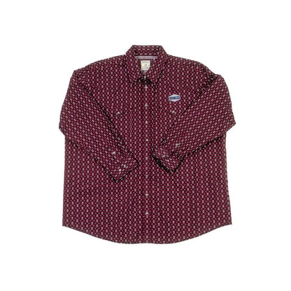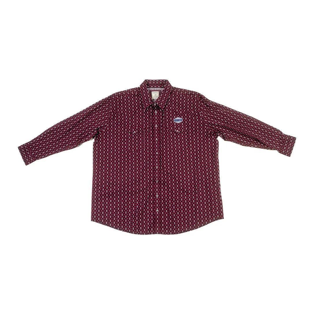 Panhandle Men's Long Sleeve Rough Stock Print Burgundy