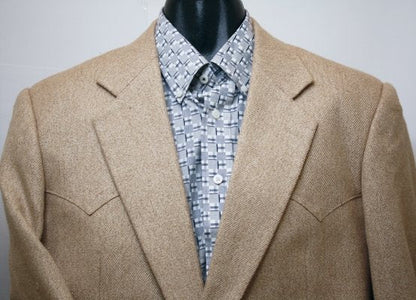 Going to a Summer event? This Pandhandle Sport Jacket has Western front and back yoke credentials with a twist. The Silk and Wool blend has the unmistakable feel of silk, and the colour has the unmistakable look of Summer.