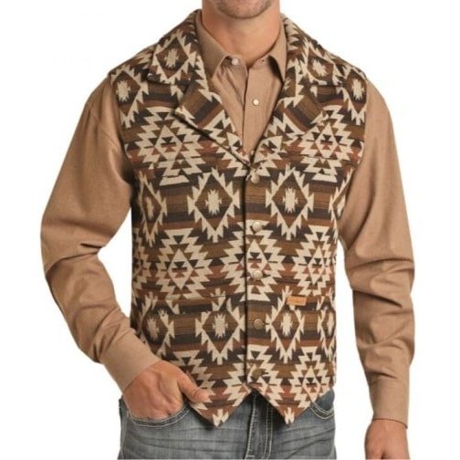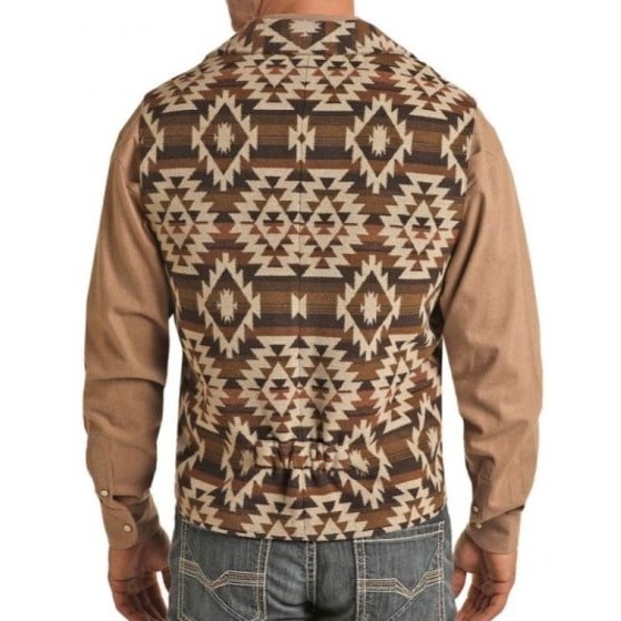 Powder River Men’s Vest Wool Aztec Allover Print