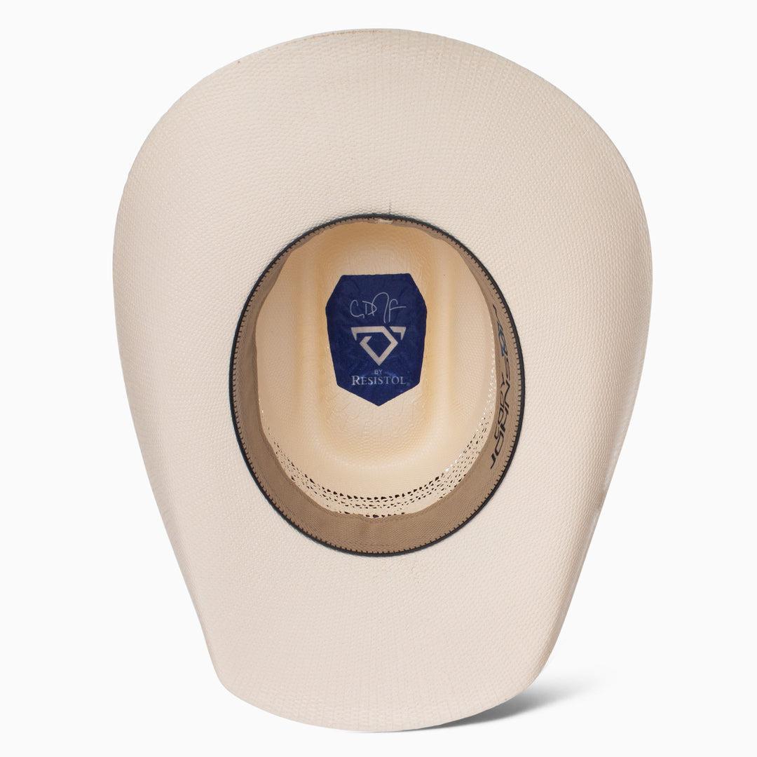 The Resistol Unisex Cojo Vaquero Straw Cowboy Hat from the Cody Johnson Collection features a Round Brick crown with a height of 4 1/4 inches. It's designed for comfort with a Dri-Lex sweatband.