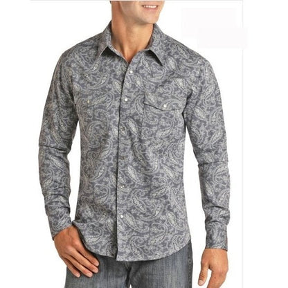 Rock & Roll Men’s Work Shirt Flame-Resistant Long Sleeve Snap B2S6562
