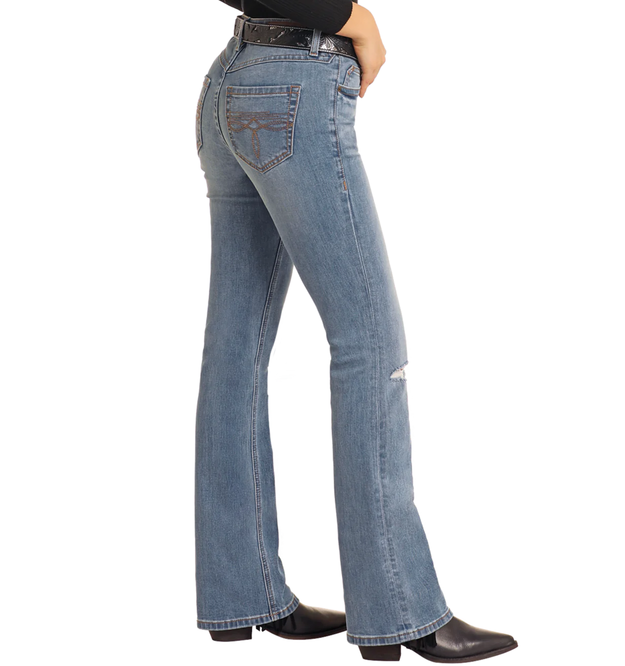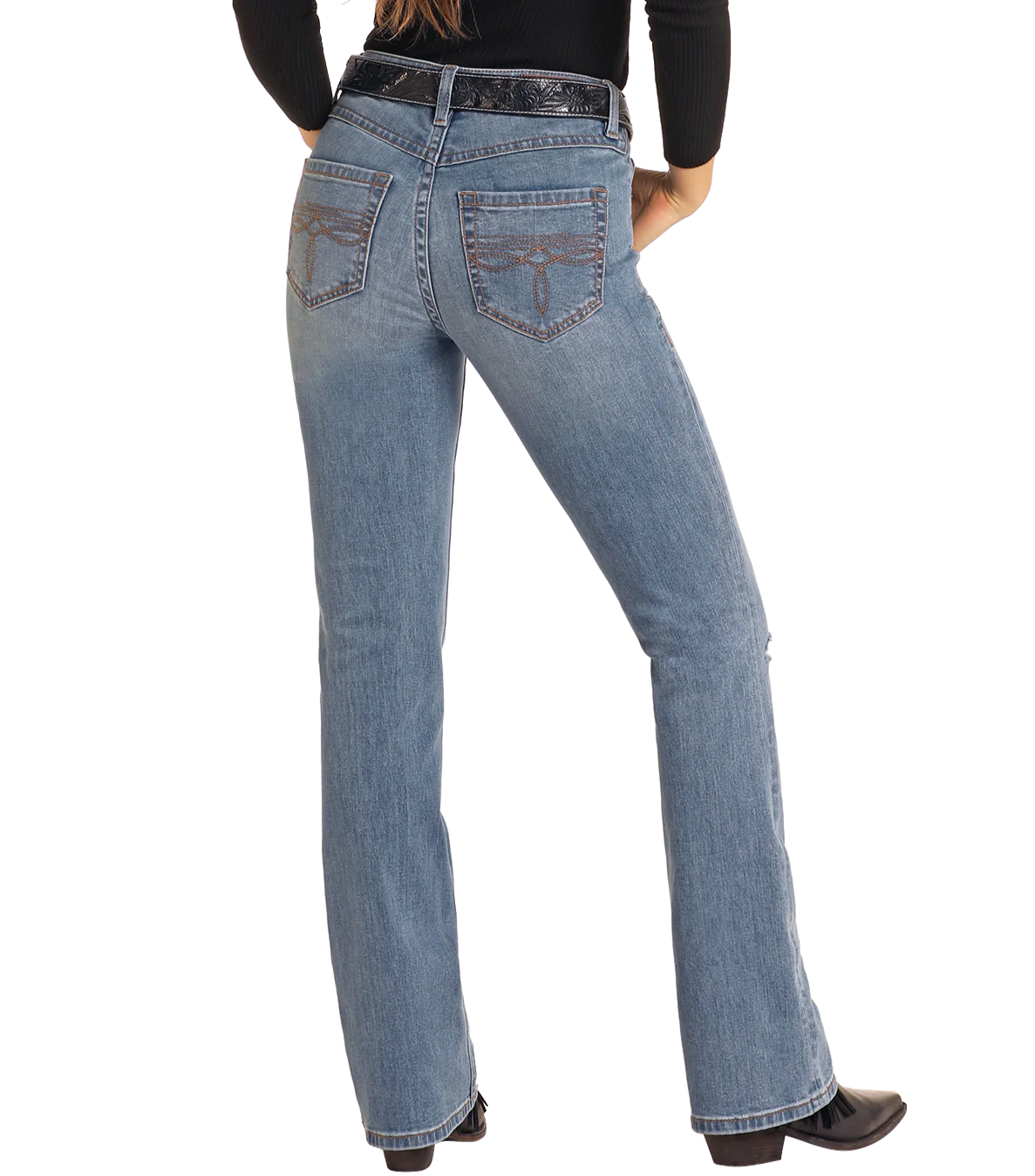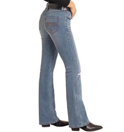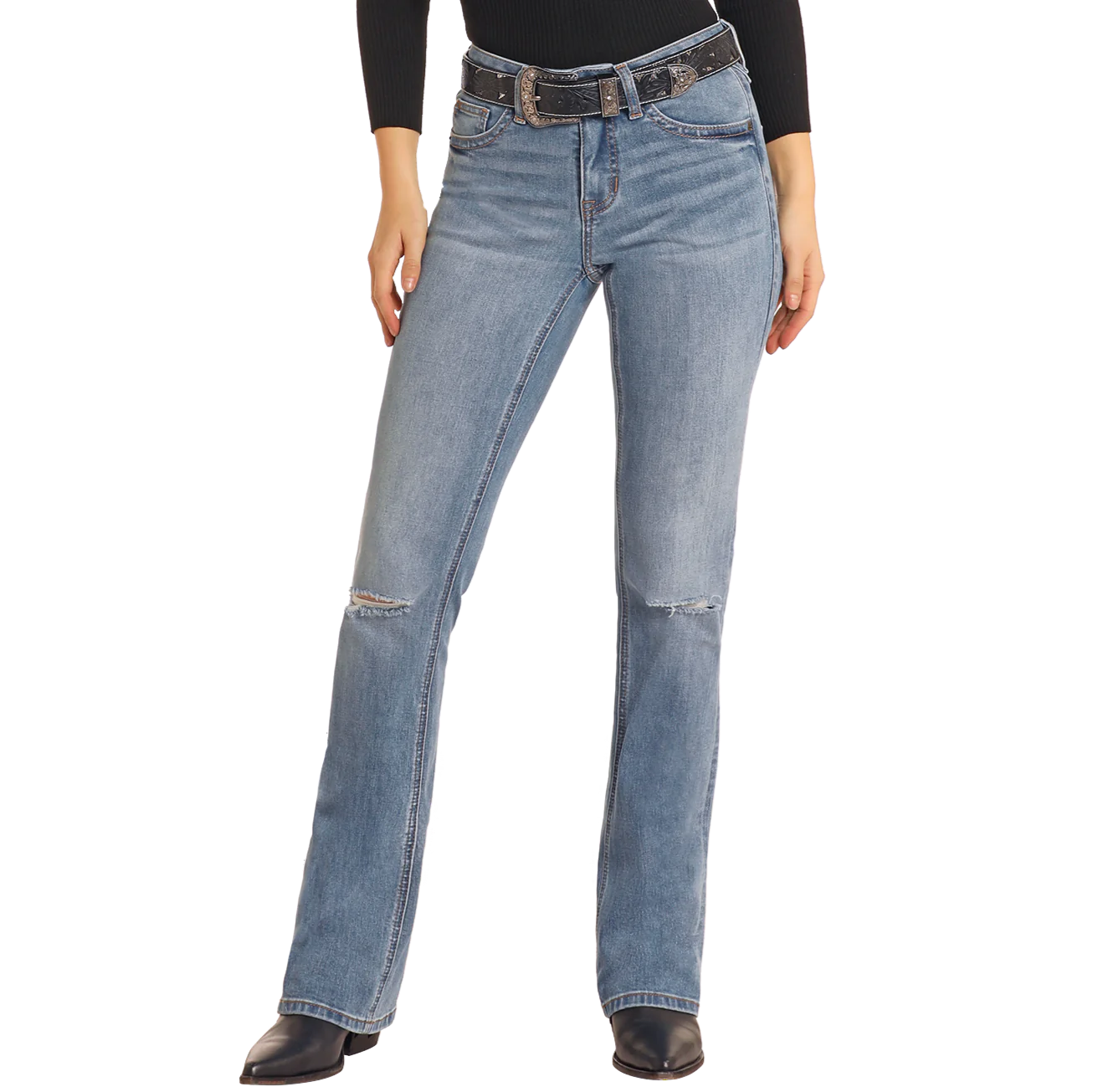 Rock & Roll Denim Women's Distressed Mid-Rise Boot Jeans
