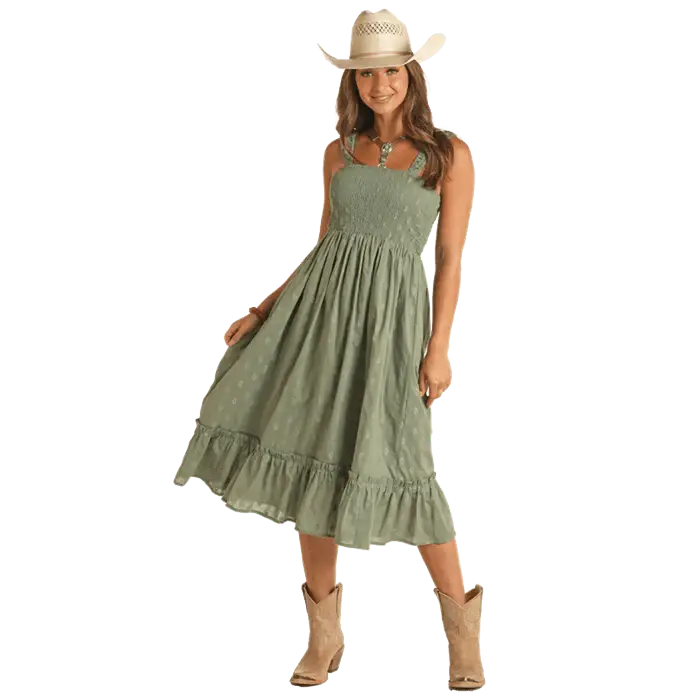 Rock & Roll Women’s Dress Tank Straps Ruffled Hem Aztec Eyelet