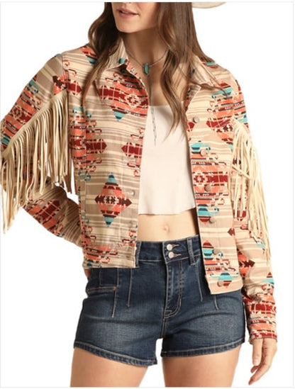 Rock & Roll Women’s Jacket Fringed Aztec Stripe -Clearance